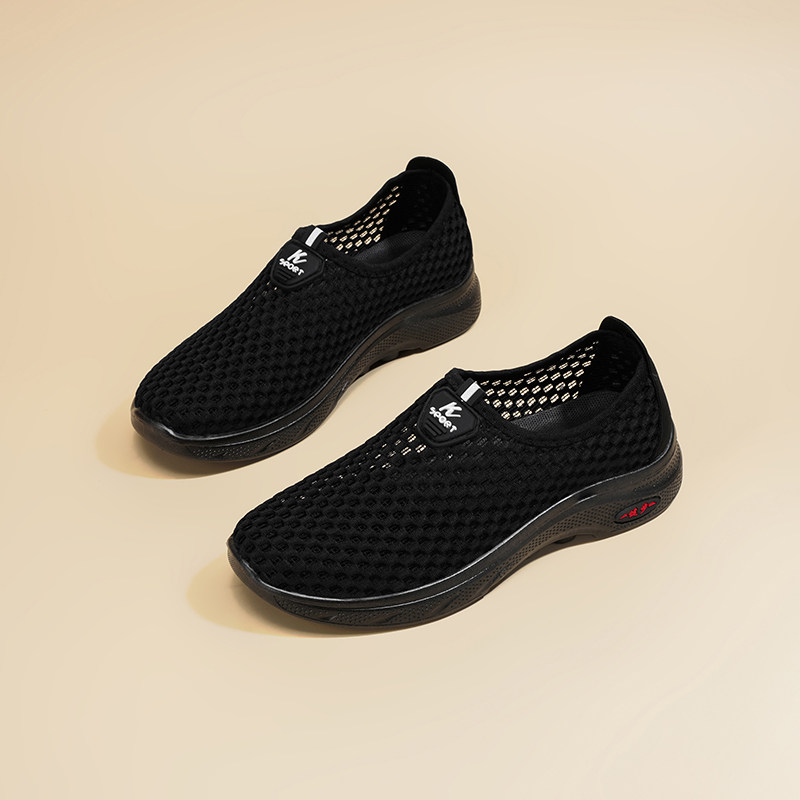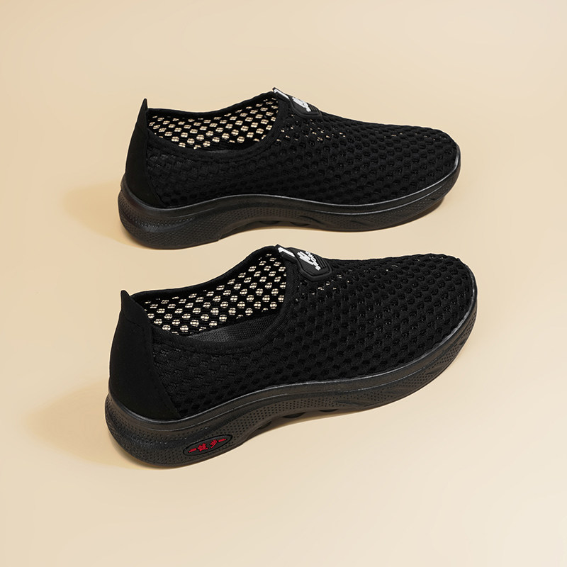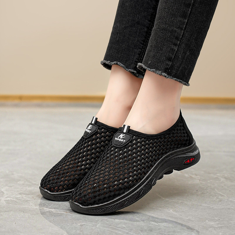 老人鞋夏季女鞋透气妈妈鞋软底轻便网眼凉鞋洞洞鞋防滑黑色运动鞋