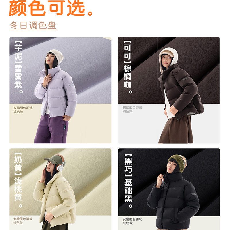 安踏面包羽绒服女装春季新款立领短款加厚棉服官方正品外套女款