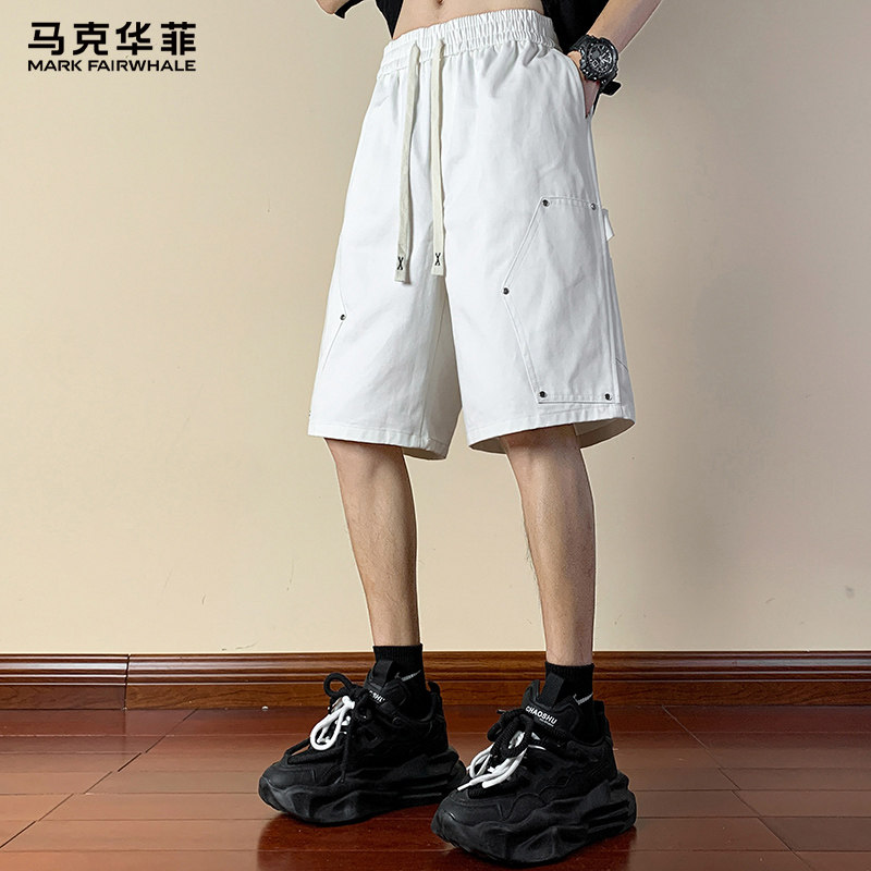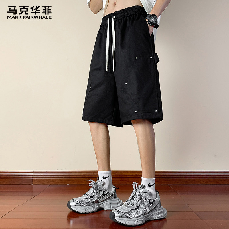 马克华菲铆钉拼接设计感工装短裤夏季高街痞帅潮流纯棉裤子男款