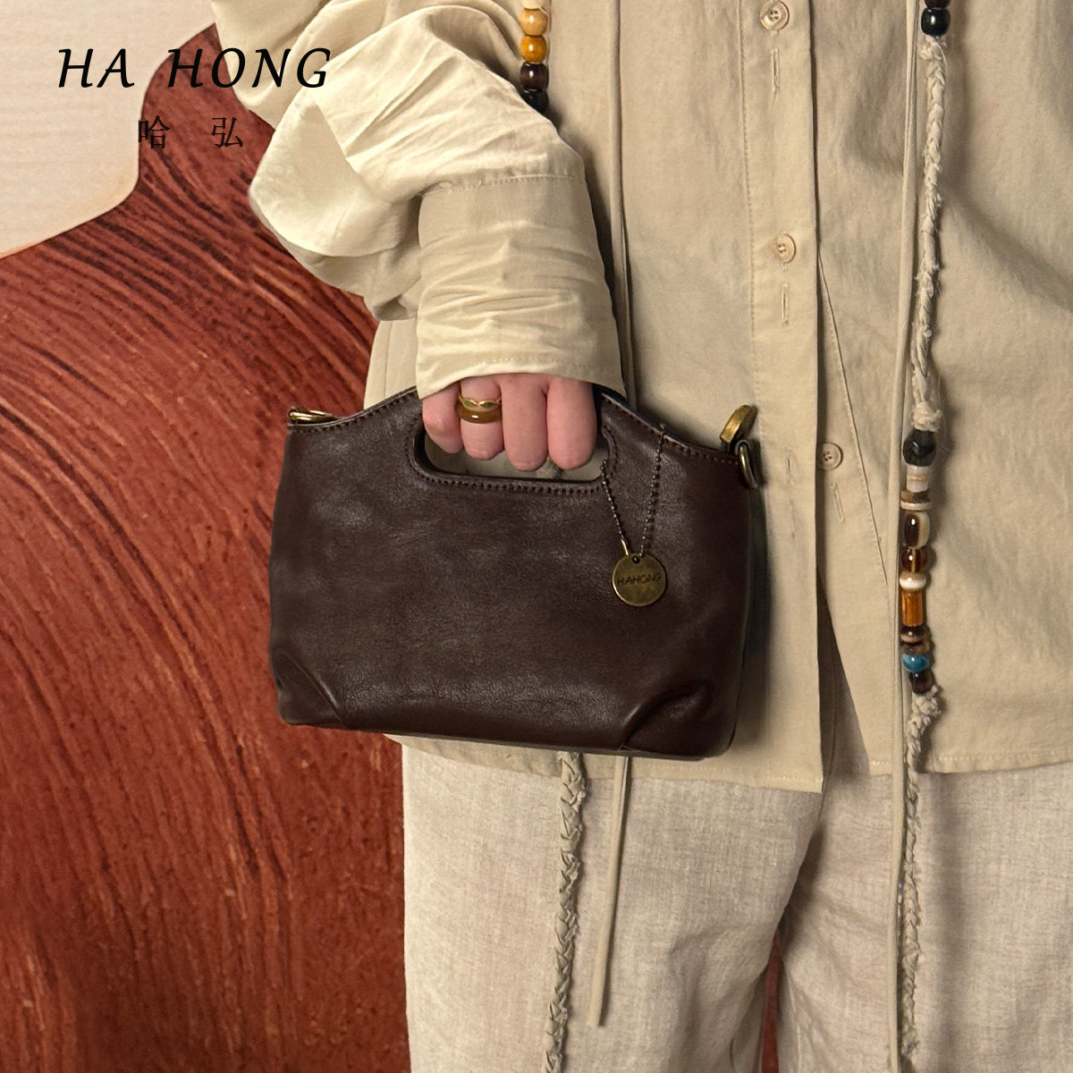 哈弘新款真皮云朵包植鞣头层牛皮高级感单肩斜挎小包包手提小方包