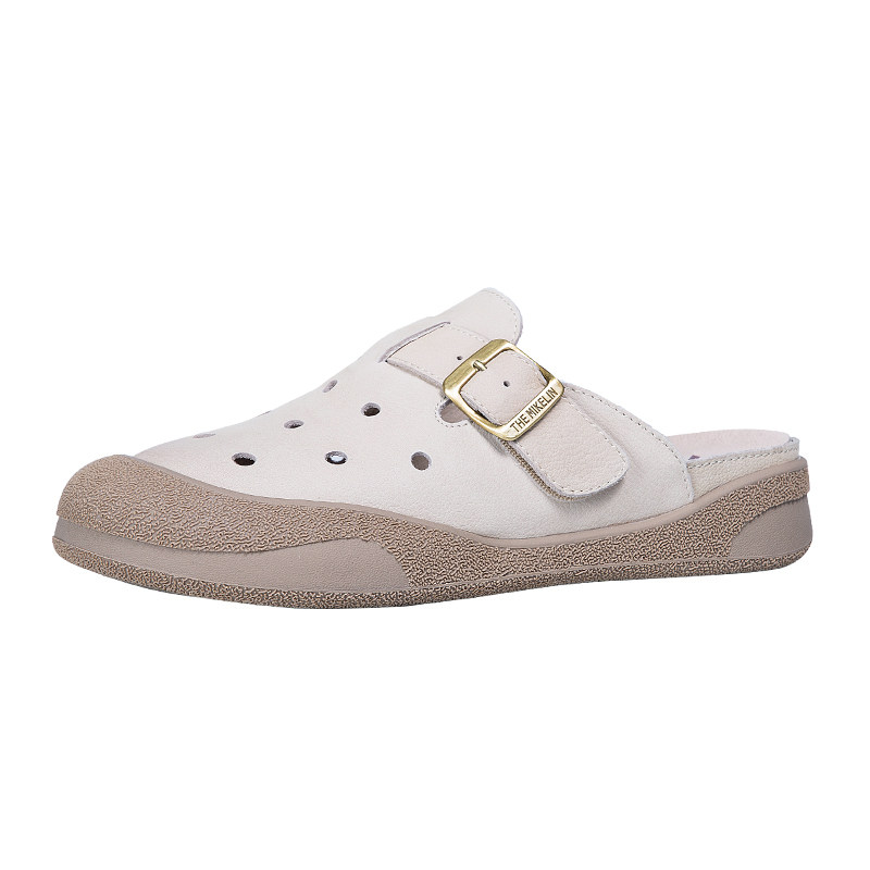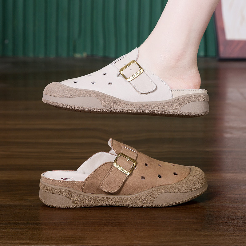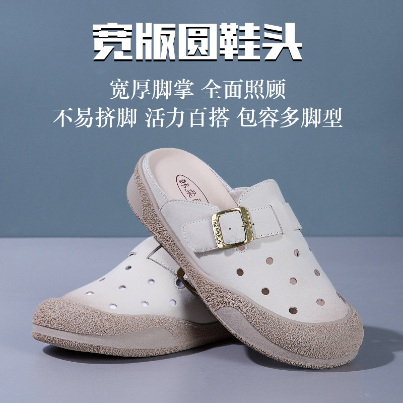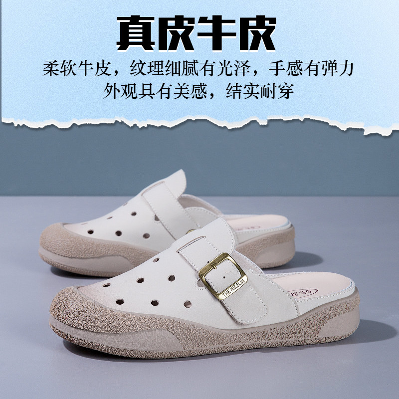 包头拖鞋女2026新款外穿夏真皮软底牛皮半拖鞋勃肯鞋洞洞凉拖鞋