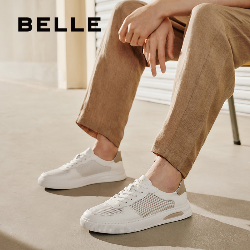 百丽男士网面透气小白鞋夏季新款软底轻便休闲运动板鞋子A1912BM5
