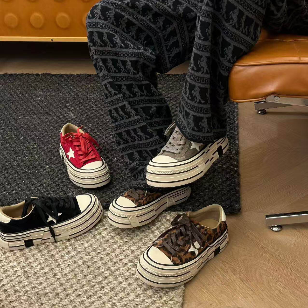 H55女鞋率性玩家2026新款休闲厚底韩版ins风百搭复古增高星星板鞋