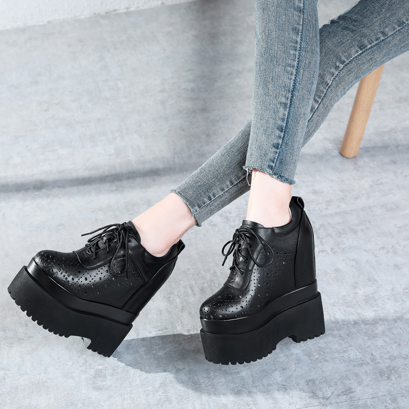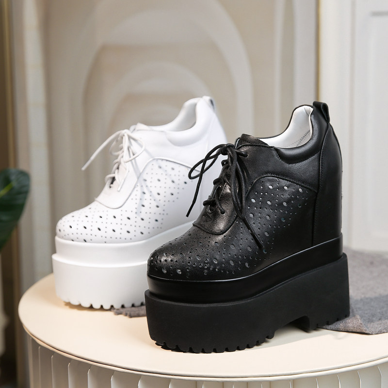 16cm内增高女鞋镂空透气2021春夏真皮厚底防滑超高跟小个子小白鞋