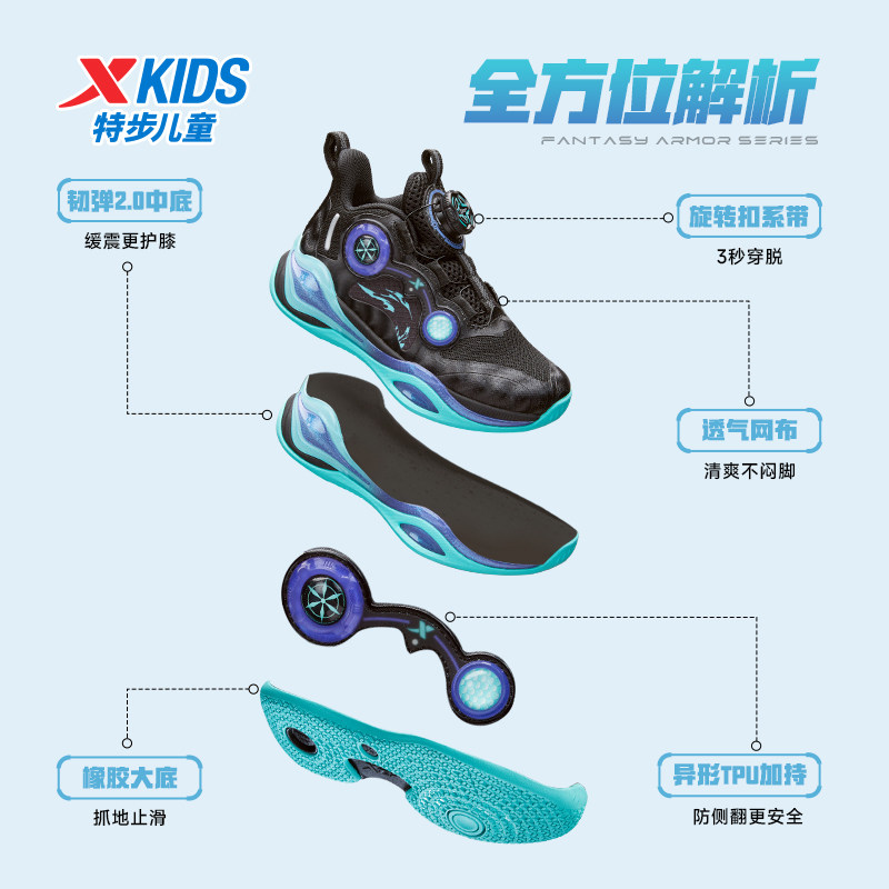 特步童鞋春季新款儿童运动鞋男童减震缓震耐磨幼小童旋纽扣篮球鞋