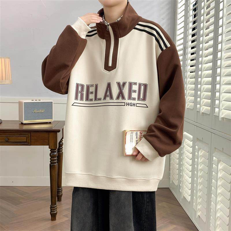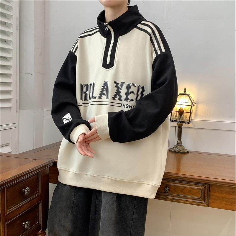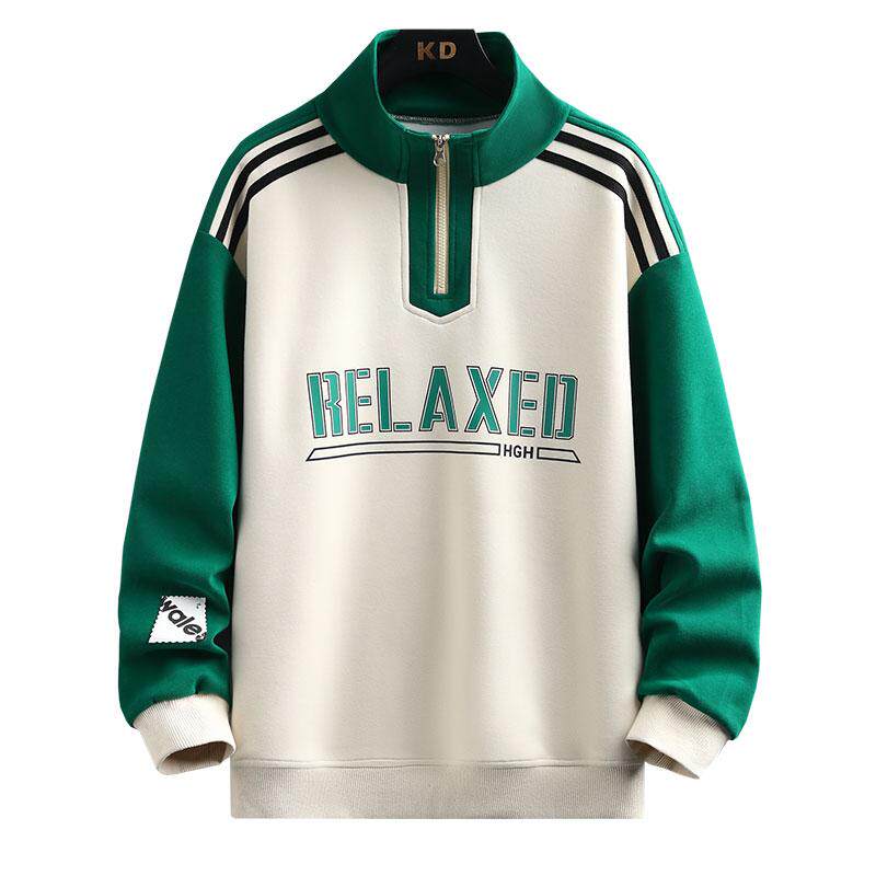 青少年卫衣男2025新款秋冬加绒加厚条纹半高领半拉链帅气初中生潮