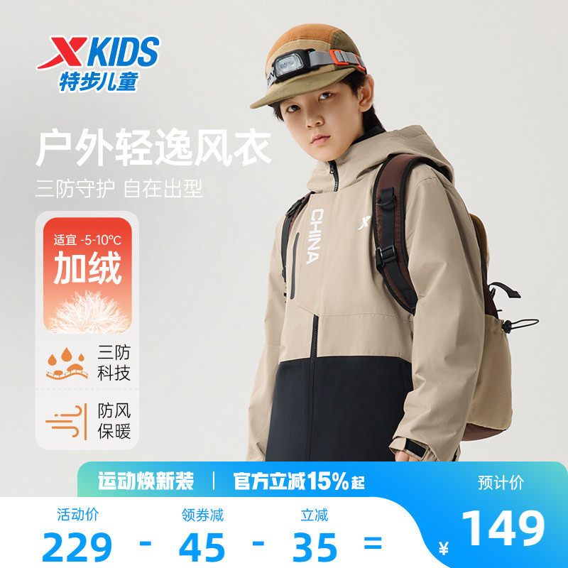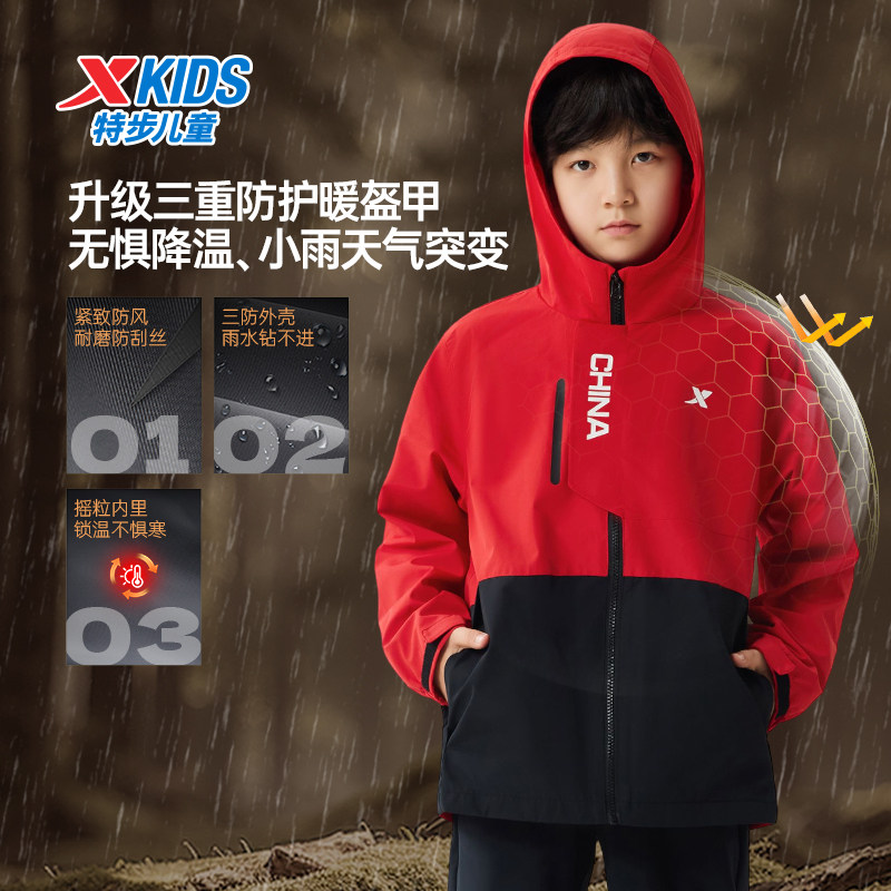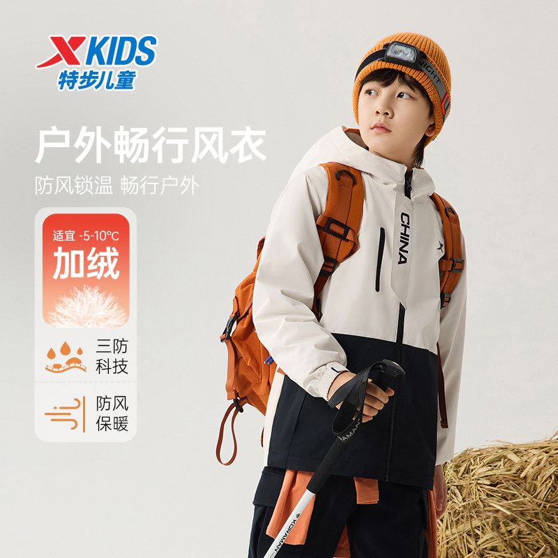 特步童装儿童厚外套2026春秋季新款风衣摇粒绒男童防风加绒冬上衣