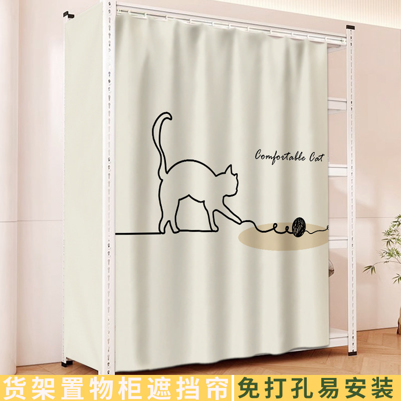 定制货架遮挡帘置物架鞋柜遮丑布帘柜子自粘式拉帘魔术贴防尘帘