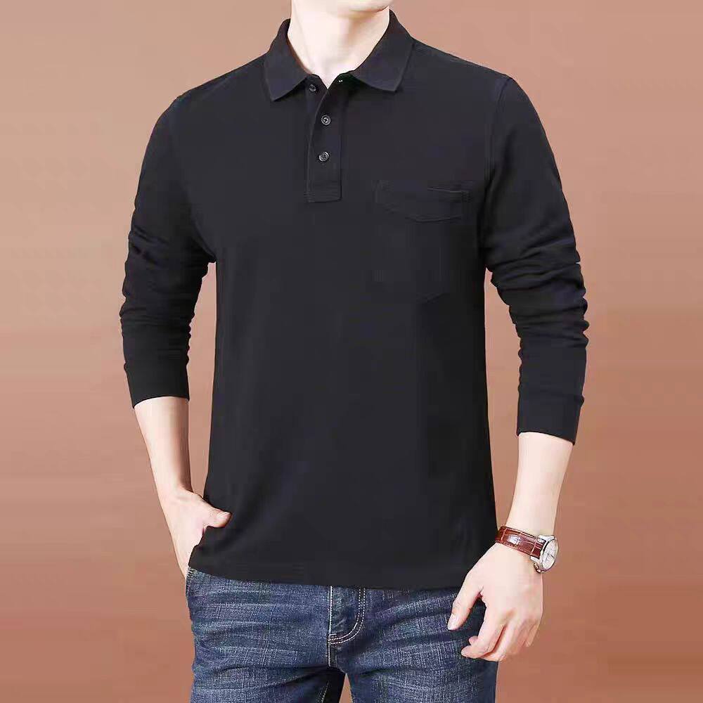 意邦奴秋季成熟男士长袖纯色T恤休闲男装翻领男款上衣男纯棉POLO