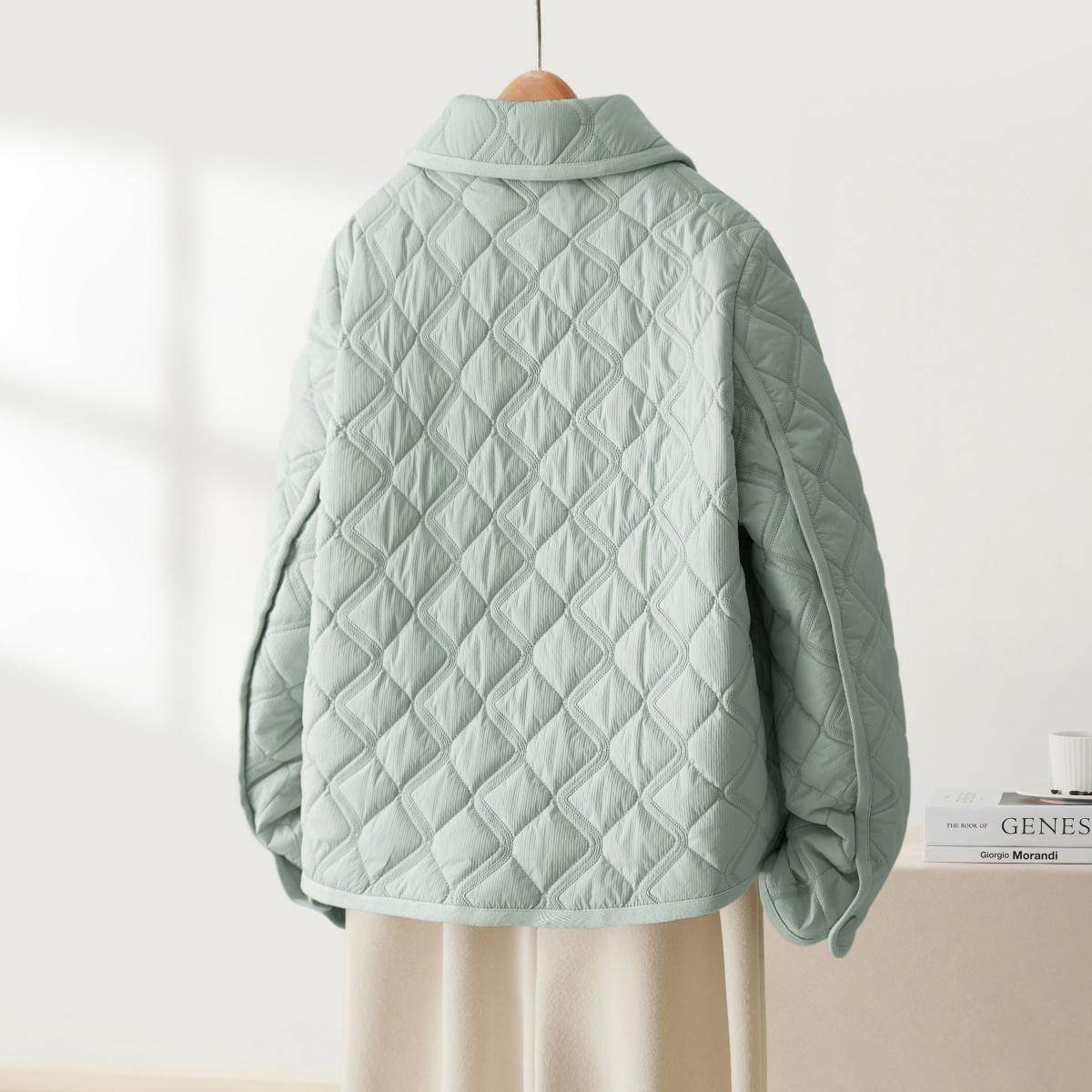 IHIMI海谧轻薄棉衣女2026春季新款气质薄款上衣菱格棉服短款外套