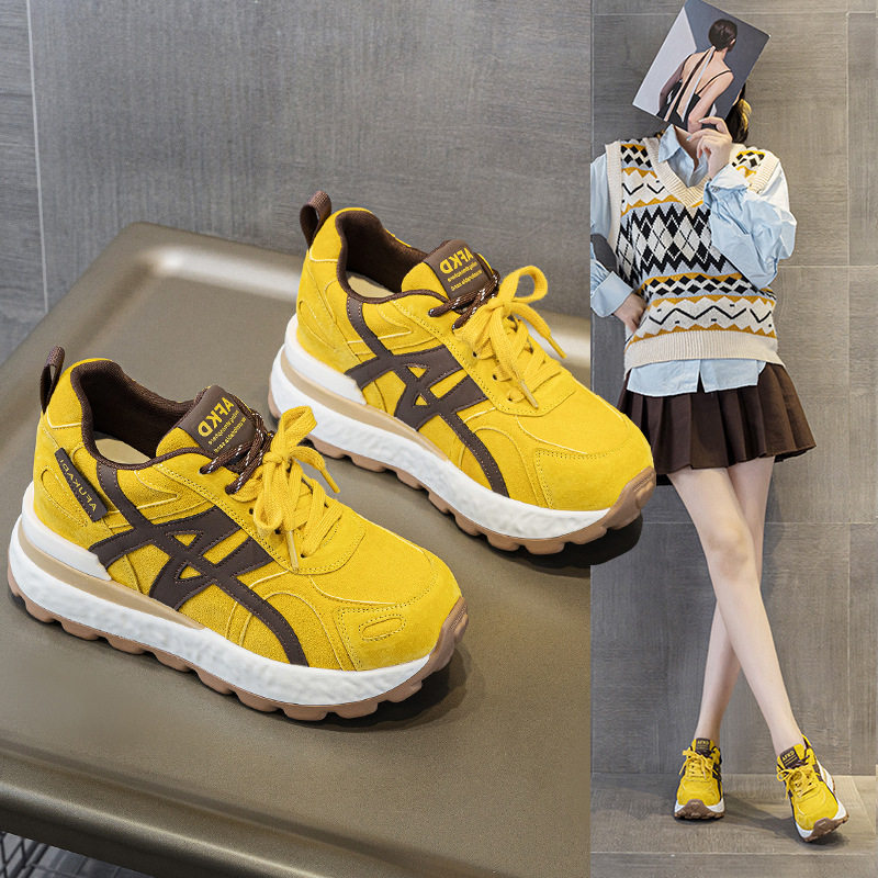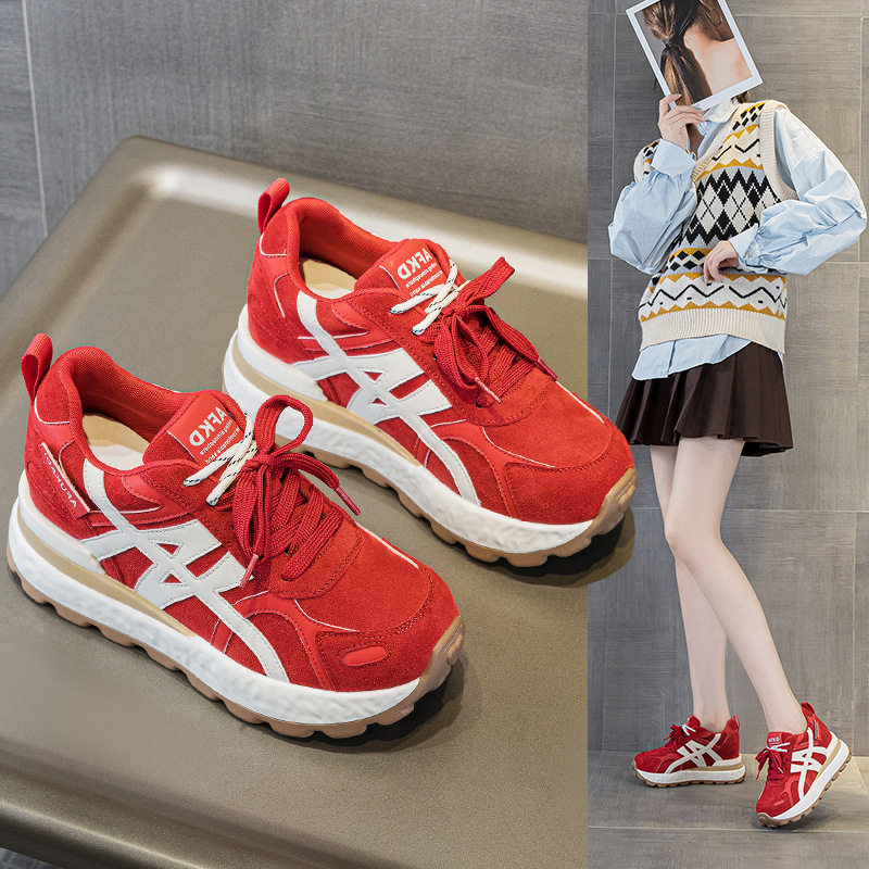 8CM内增高真皮德训鞋女2026春秋新款运动阿甘百搭加绒休闲小白鞋