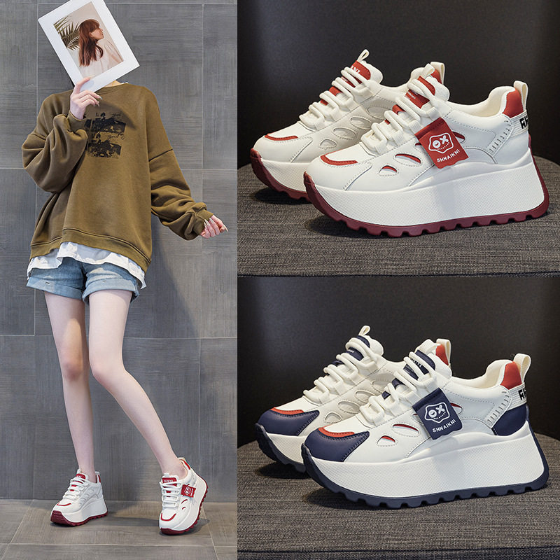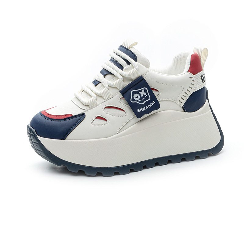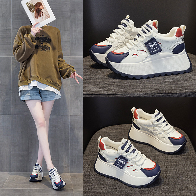 真皮内增高老爹鞋女2025春季新款7cm松糕厚底时尚运动休闲阿甘鞋