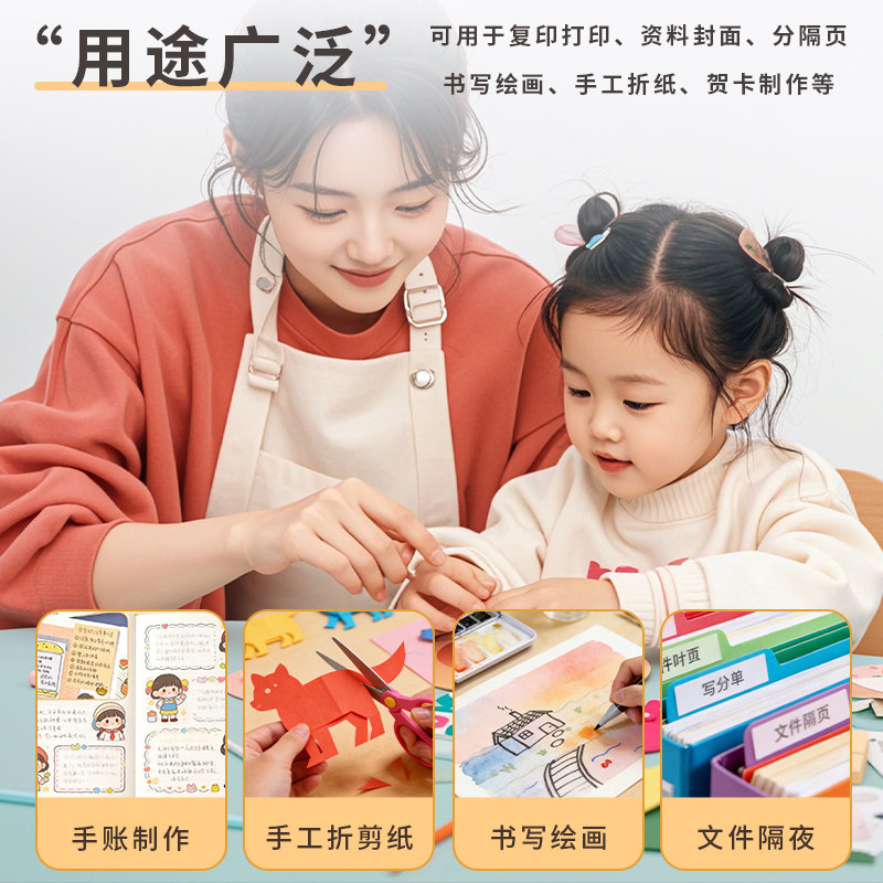晨光a4彩色打印纸复印纸办公用纸100张粉色大红色彩色学生DIY益智手工折纸白色纸折纸加厚彩打纸混色a4纸红纸