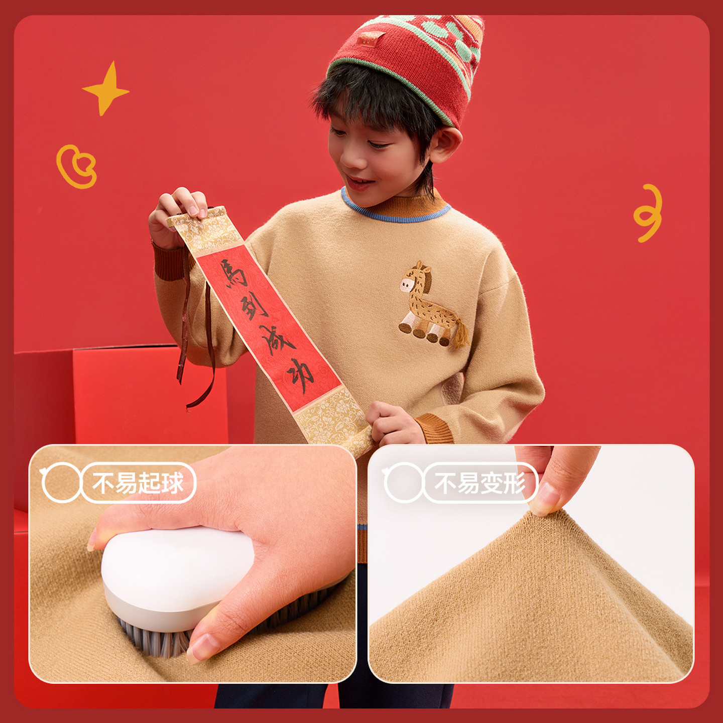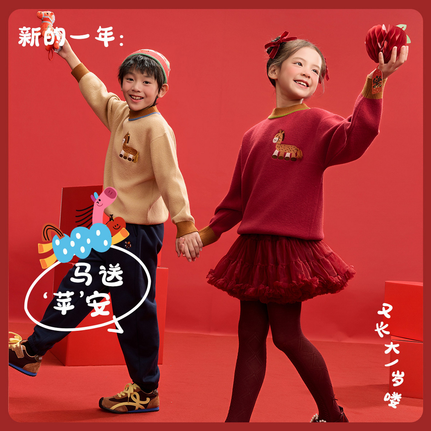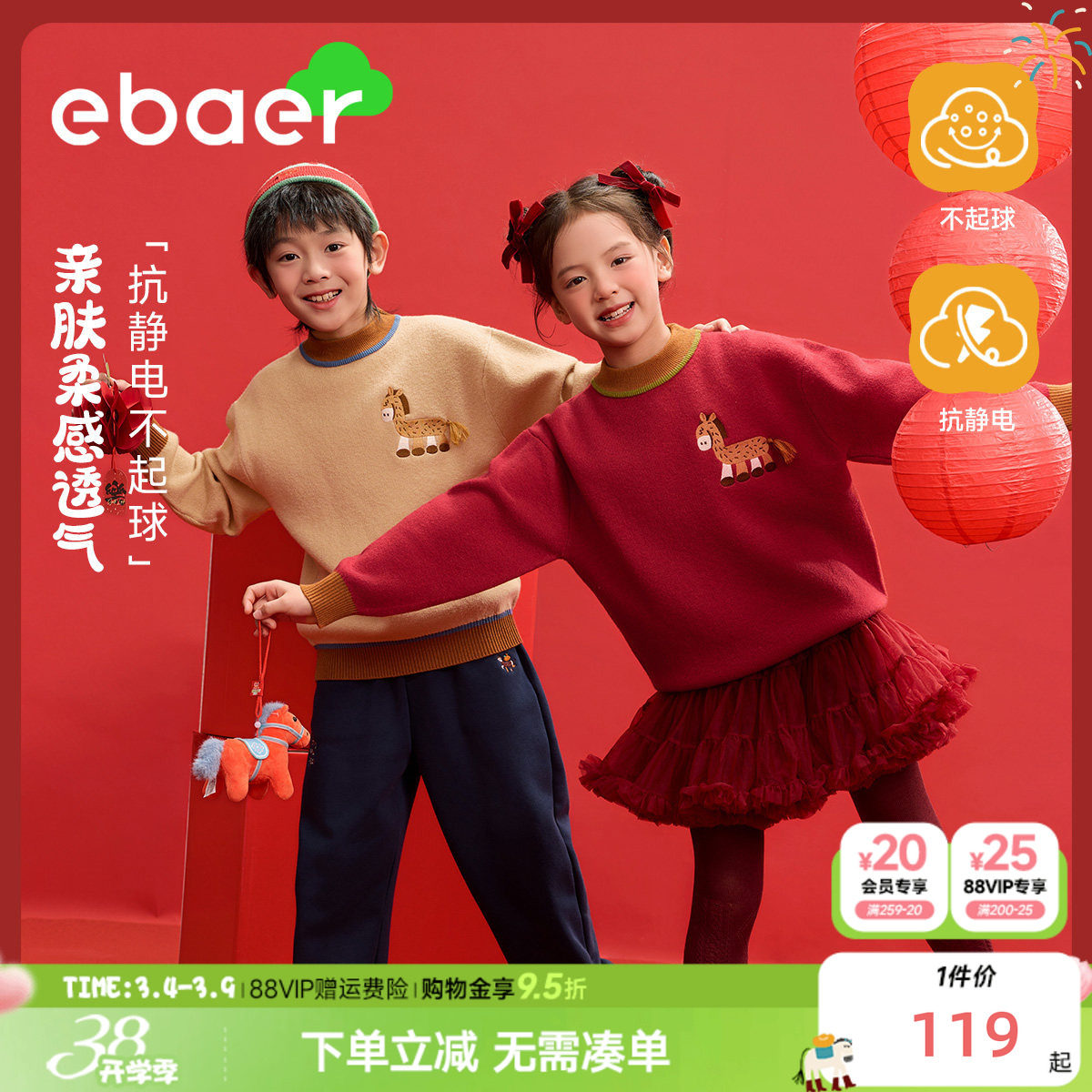 EBAER儿童新年毛衣2026冬季新款男女童红色马年拜年服保暖洋气潮