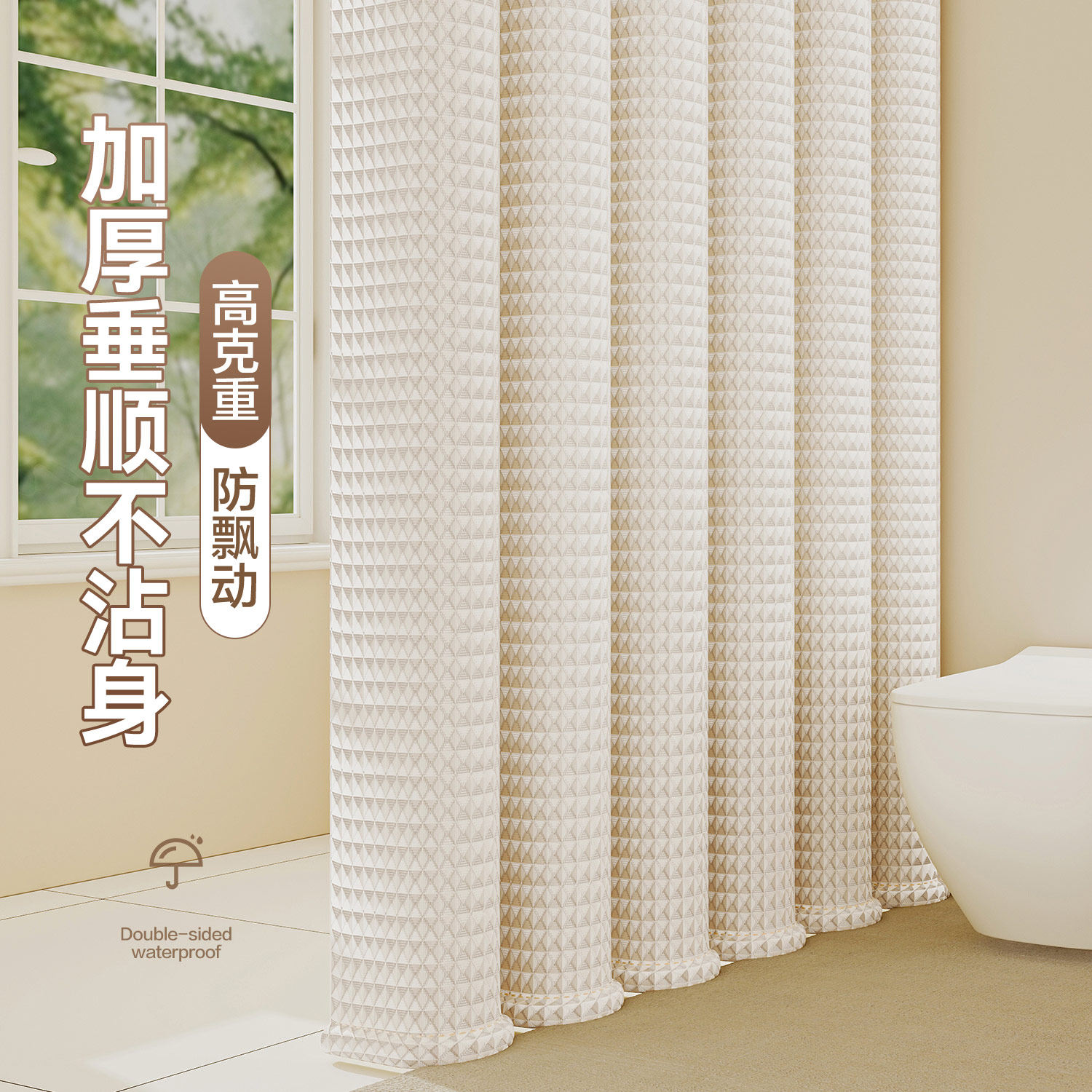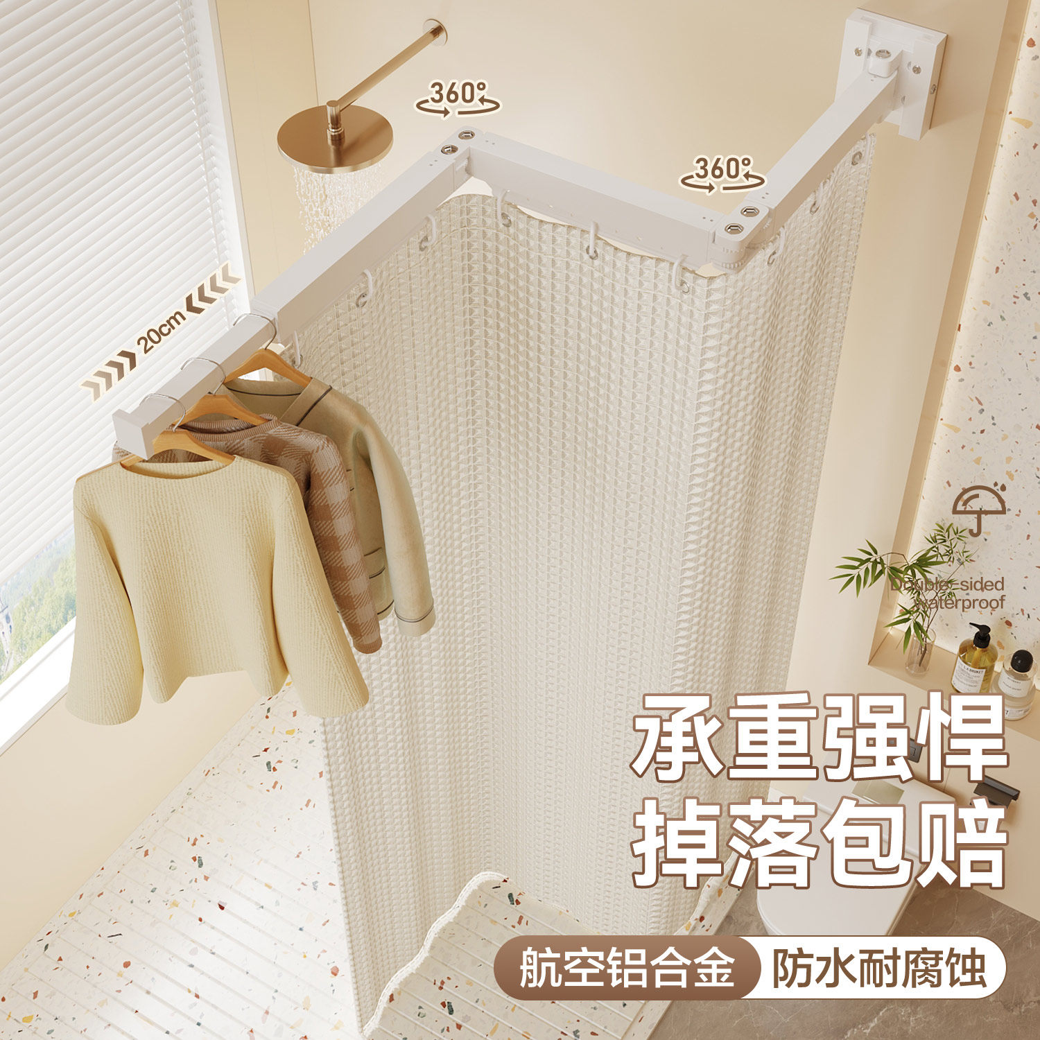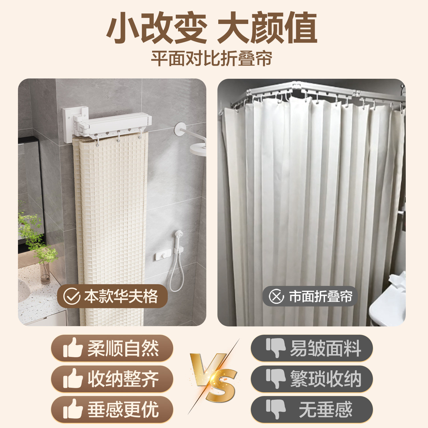 折叠洗澡浴帘浴室卫生间免打孔干湿分离窗帘隐形防水淋浴隔断帘子