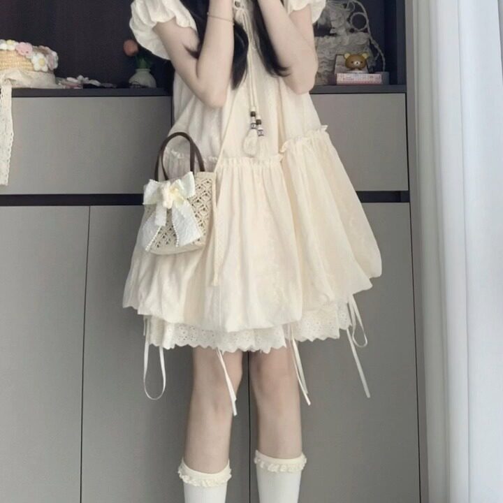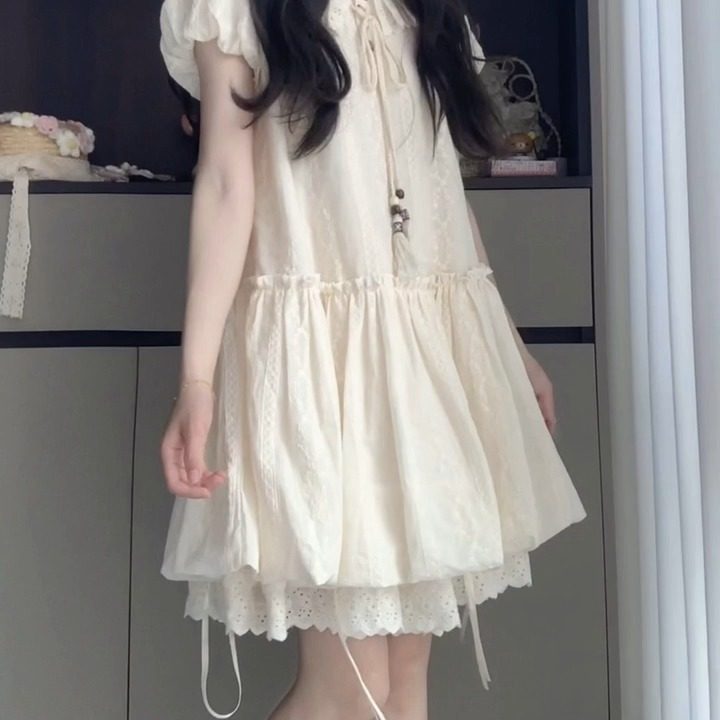 女大童泡泡袖连衣裙夏季初中生学院风甜美13岁少女孩可爱公主裙子