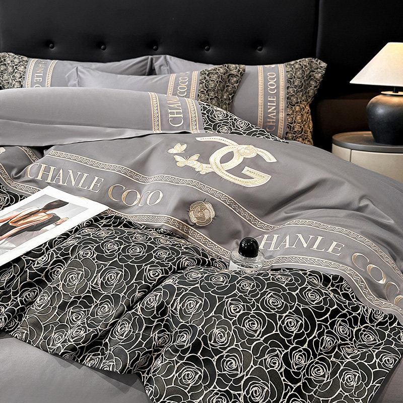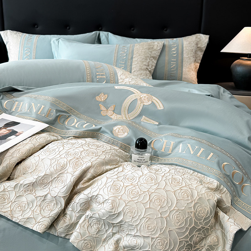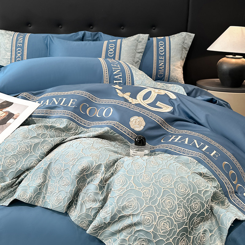 轻奢高级感纯棉四件套全棉浮雕绣花被套亲肤裸睡床单四季通用床品