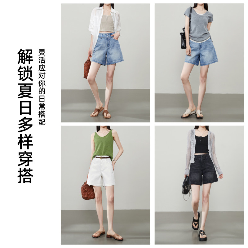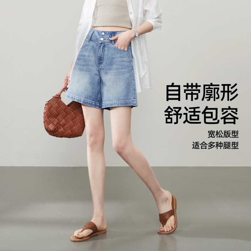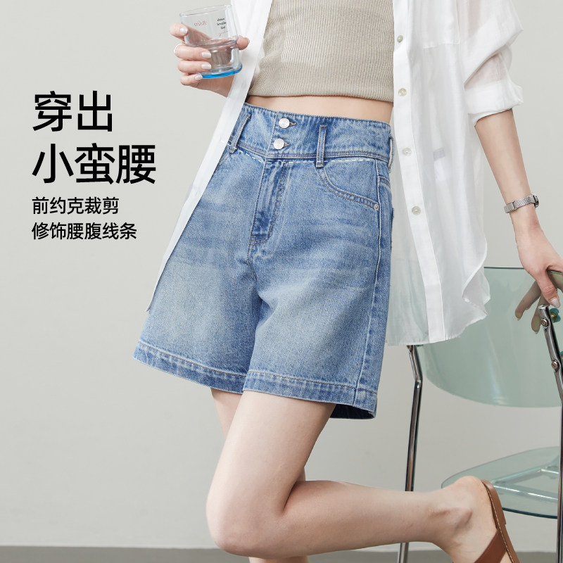 逸阳全棉两粒扣四分牛仔短裤女款2026年夏季新款A字版型显瘦裤子