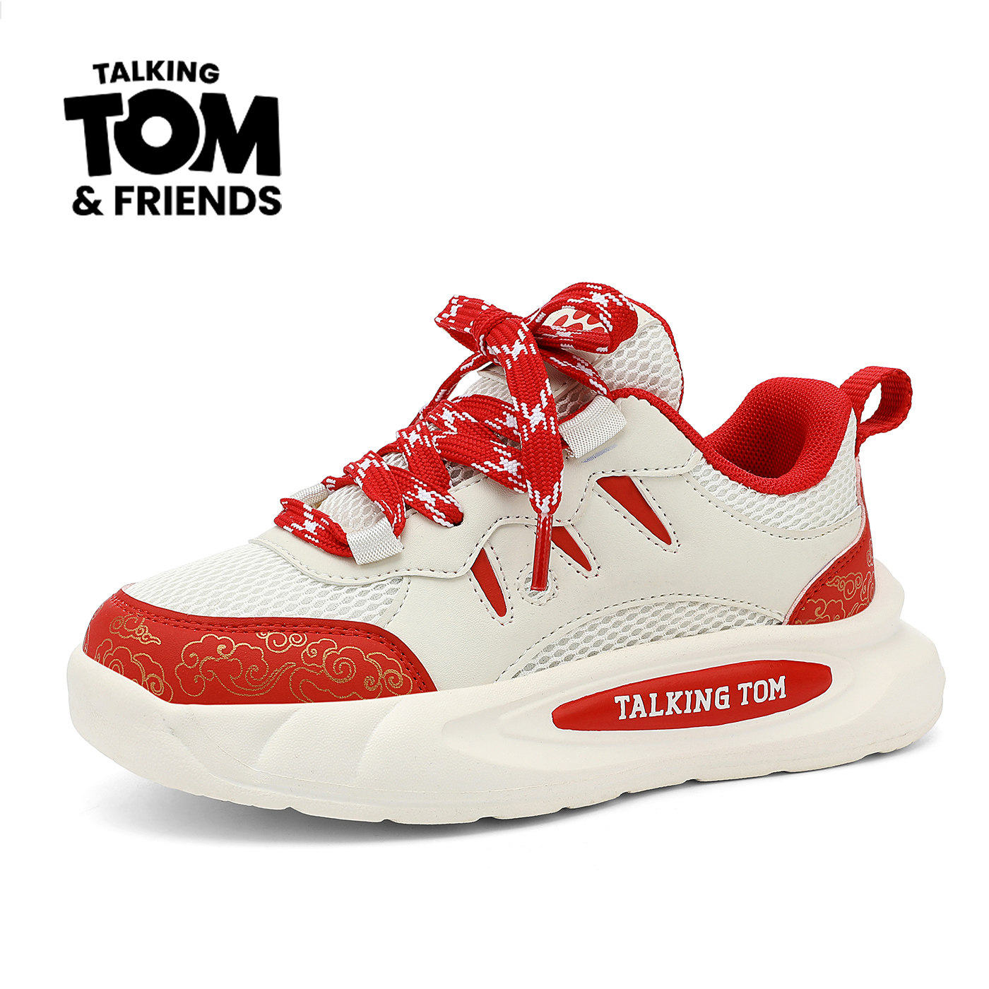 汤姆猫童鞋儿童红色过年鞋子2026春季新款网面透气男童运动鞋女童