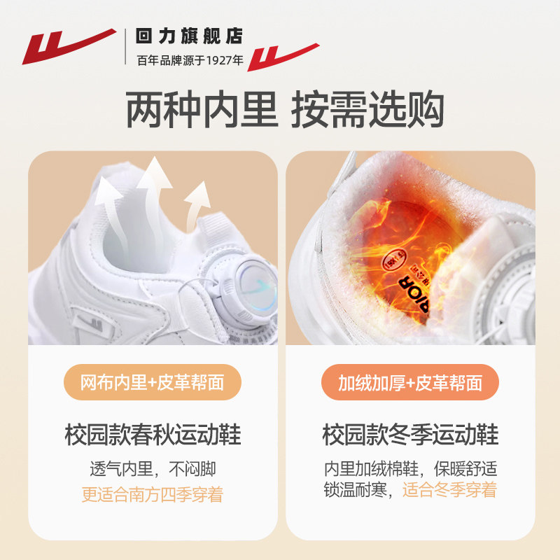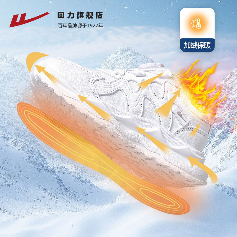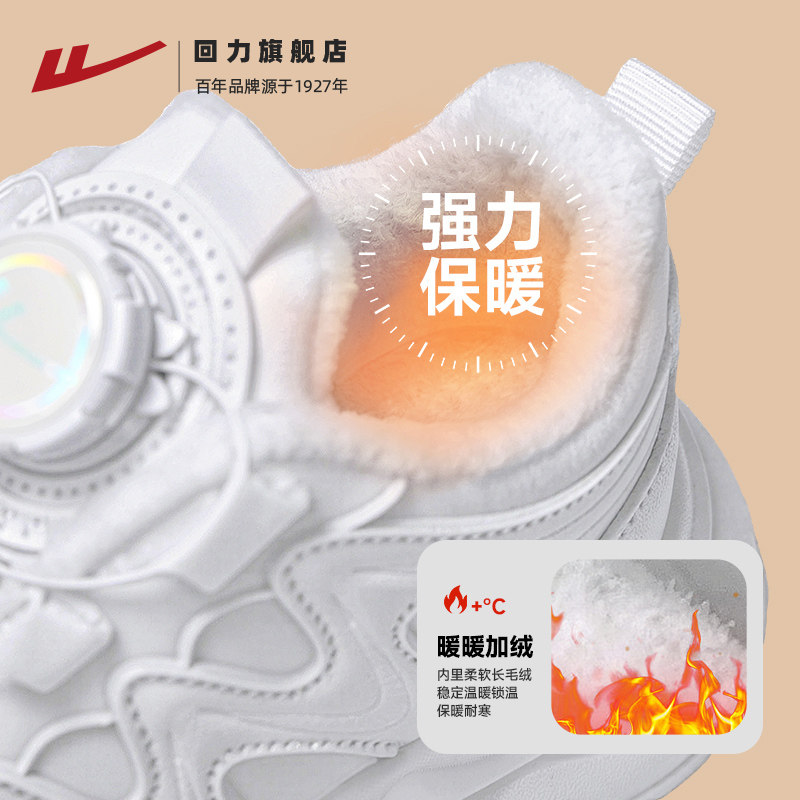 回力童鞋儿童加绒小白鞋子冬季新款男童女童保暖二棉鞋跑步运动鞋