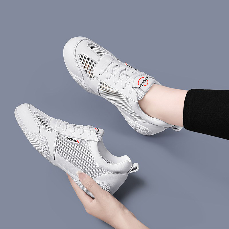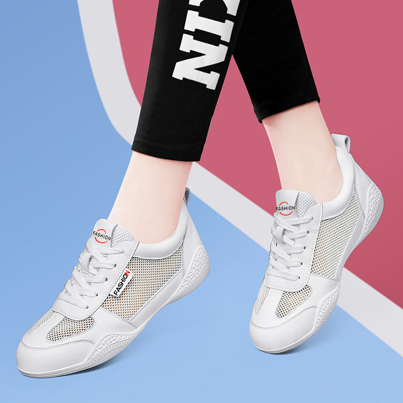 气质款真皮网鞋女春季透气薄款网面小白鞋2026新款软底休闲运动鞋