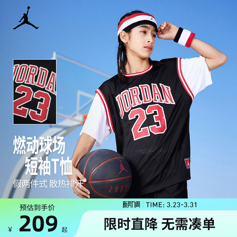 Jordan男女童短袖篮球上衣儿童运动衣透气2026夏季新款大小童球服