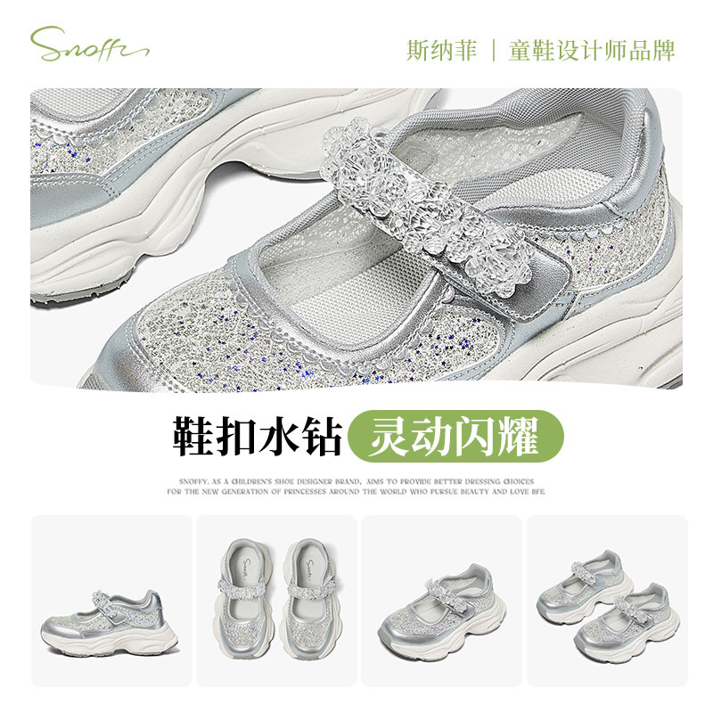 斯纳菲女童运动鞋2026夏季新款户外鞋软底轻便透气小女孩公主凉鞋