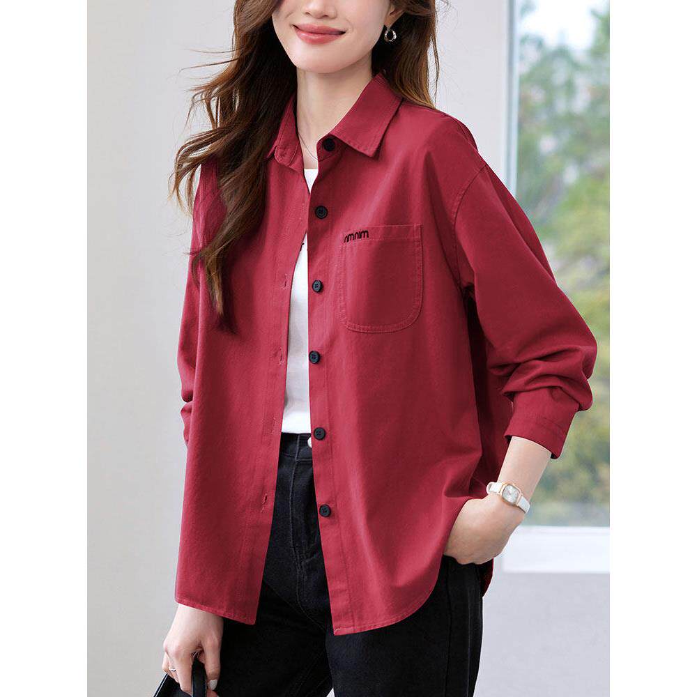 妈妈女款长袖中年春秋宽松衬衣休闲新款2026衬衫春秋大码纯棉外套