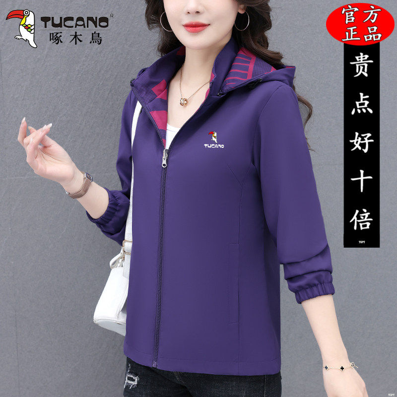 啄木鸟双面穿外套女款春秋2026新款洋气妈妈春装宽松大码女士上衣