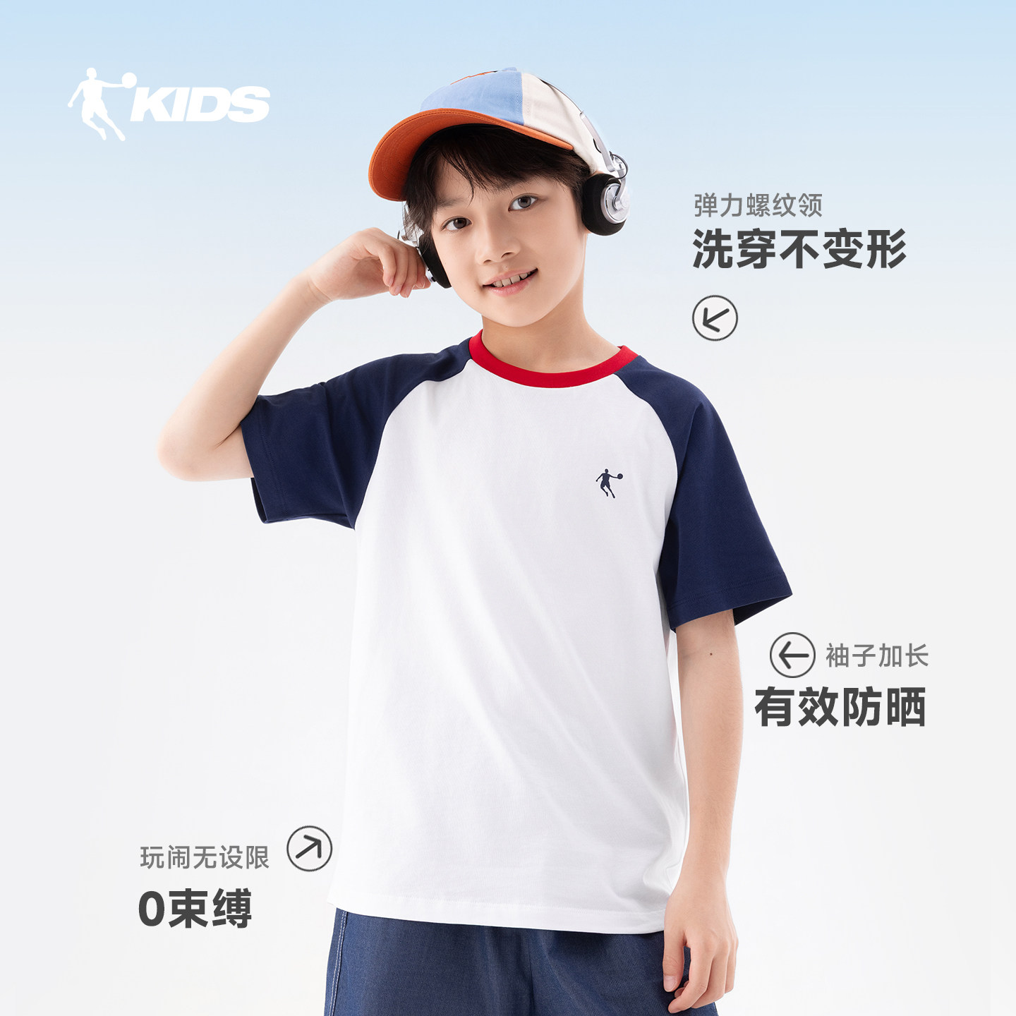乔丹童装男童短袖T恤2026夏季新款纯棉大童儿童运动半袖女童上衣
