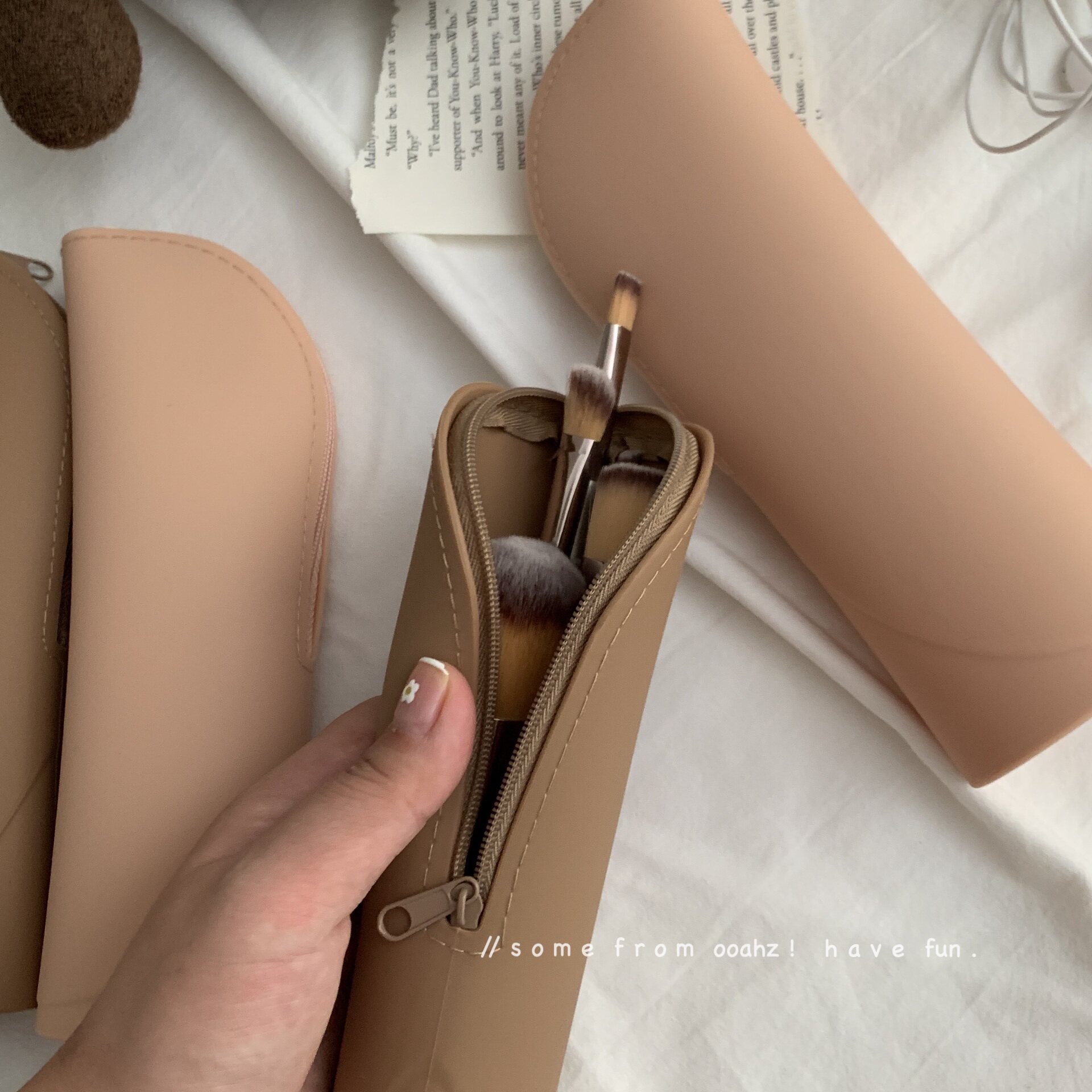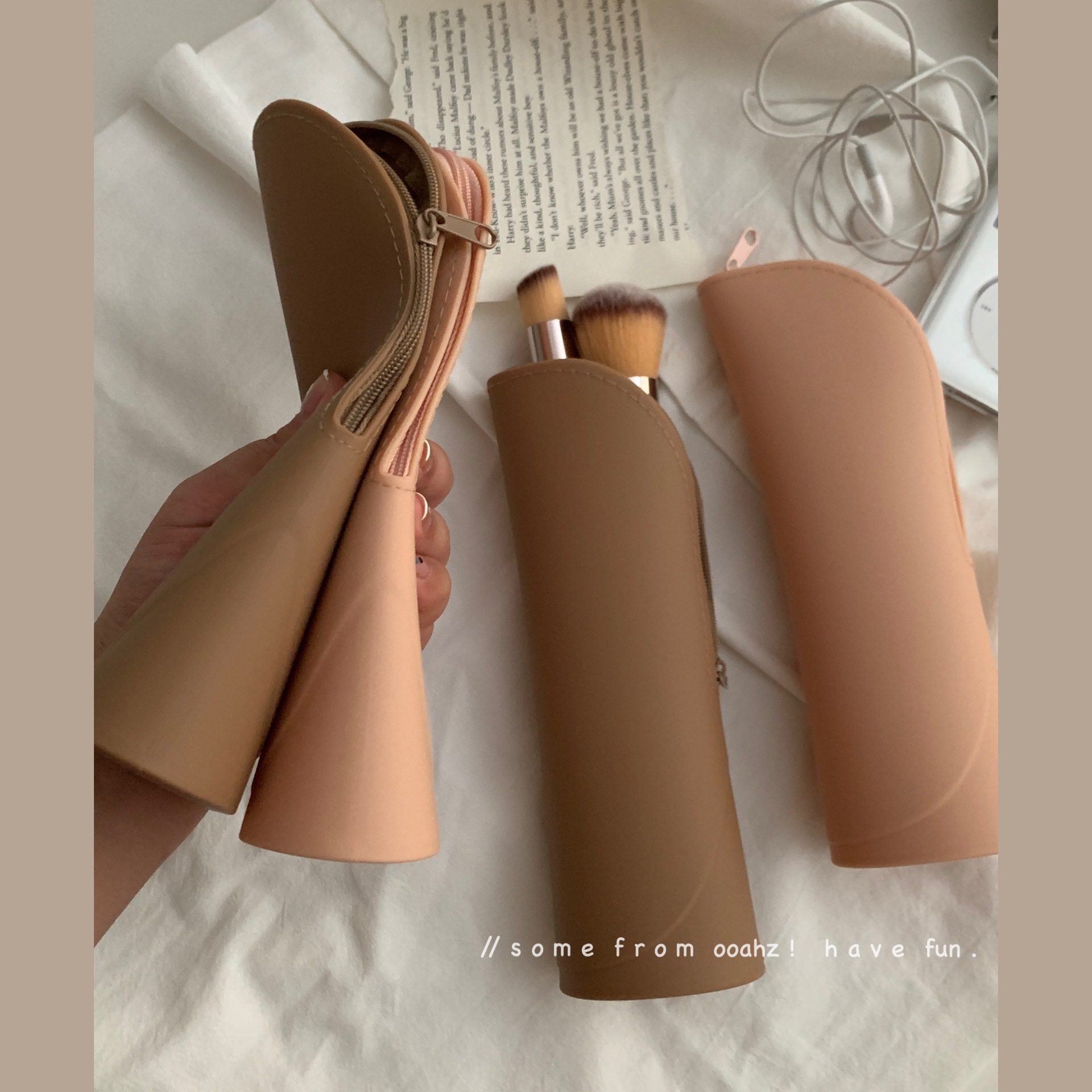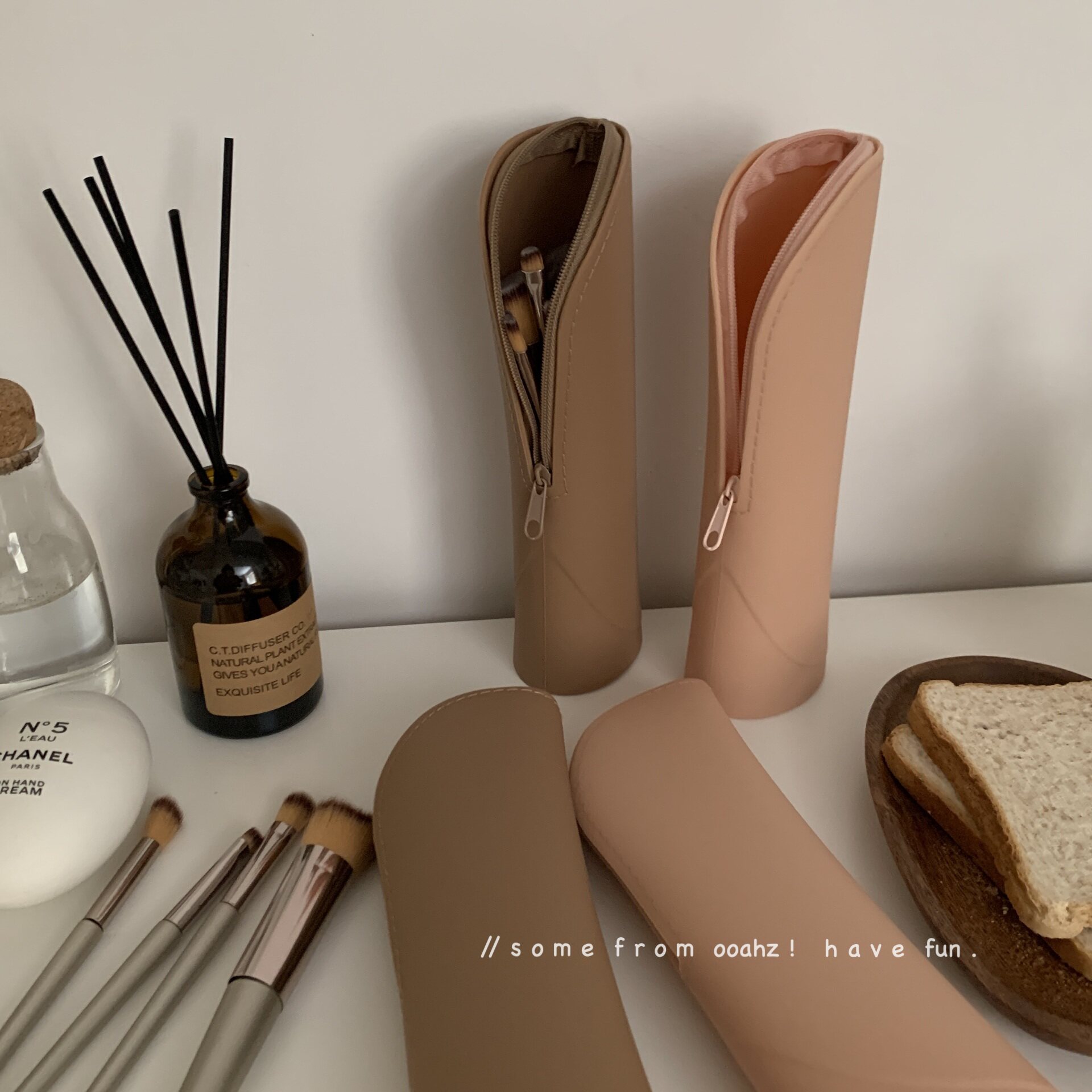 肉桂乌龙~硅胶化妆刷桶收纳包笔筒 旅行便携式拉链桌面立式收纳袋