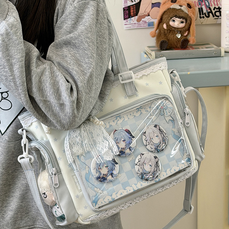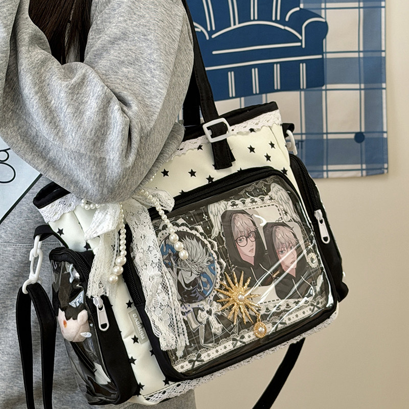 日系二次元透明痛包女学生上课补习书包大容量单肩斜挎装书手拎袋
