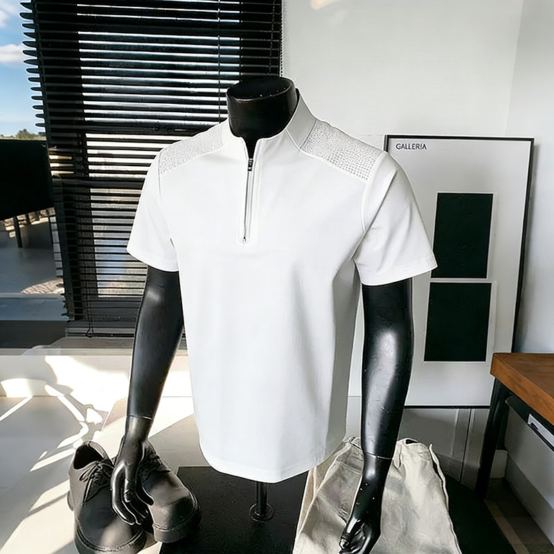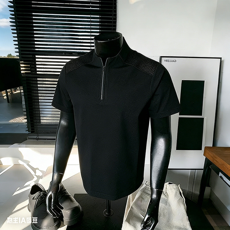 青少年速干冰丝网眼半拉链短袖T恤男士夏季大码宽松休闲正肩上衣