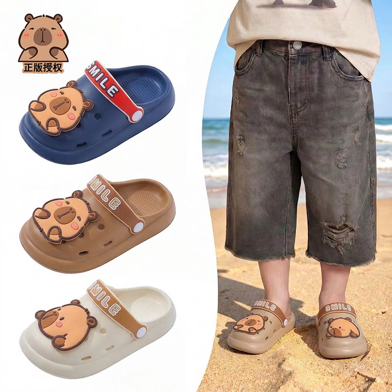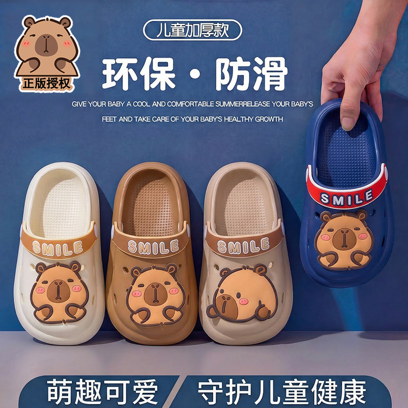 卡皮巴拉儿童洞洞鞋男童夏季外穿防滑防臭男宝eva包头凉拖鞋男孩
