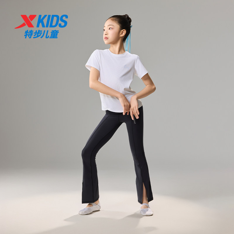 特步童装女童舞蹈短袖T恤儿童速干夏装2025夏季新款大童短T上衣服