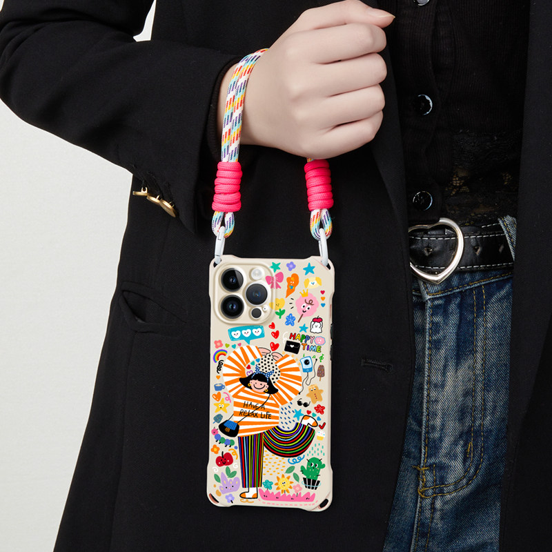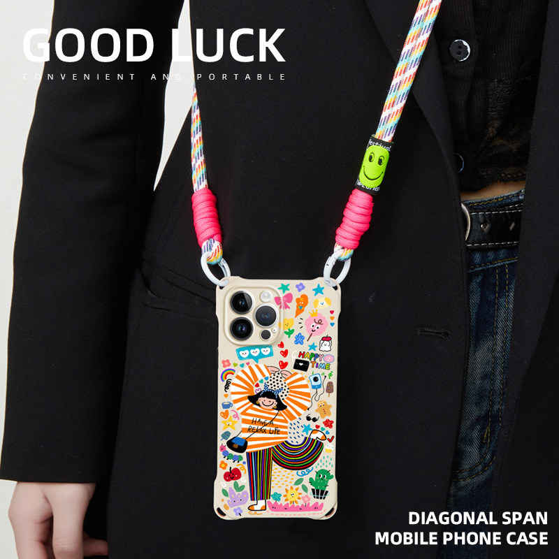 适用苹果15promax手机壳腕带挂绳新款女iphone16斜挎背带13可背挂脖14时尚高级感12pro原创卡通11ins日韩xs潮
