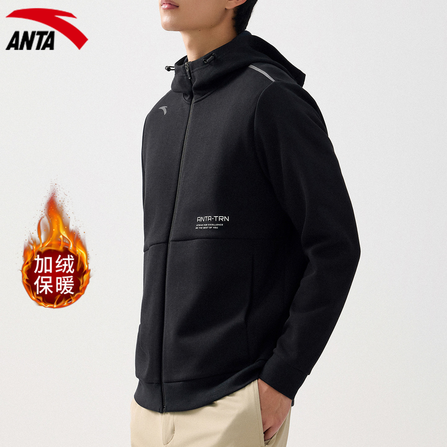 安踏外套男连帽2026新款春季加绒夹克卫衣休闲男装旗舰店运动上衣