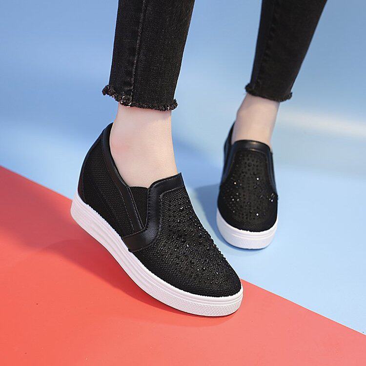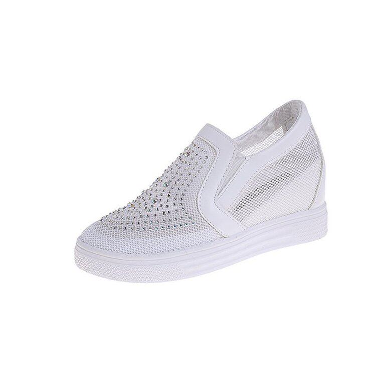 休闲舒适妈妈鞋网面透气2026年春夏季新款水钻女士内增高小白鞋女