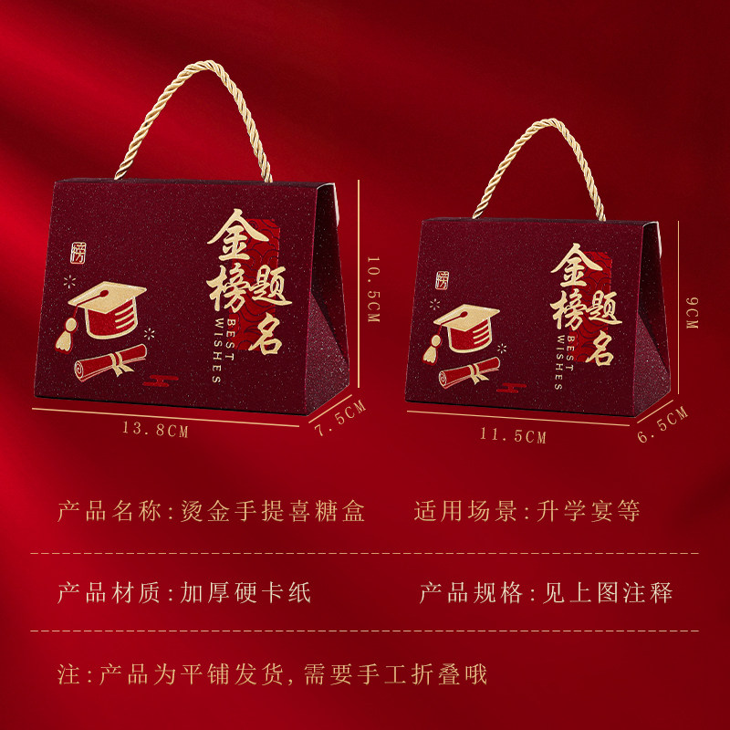金榜题名喜糖盒子高考升学宴手提糖袋高级礼盒空盒包装盒2026新款