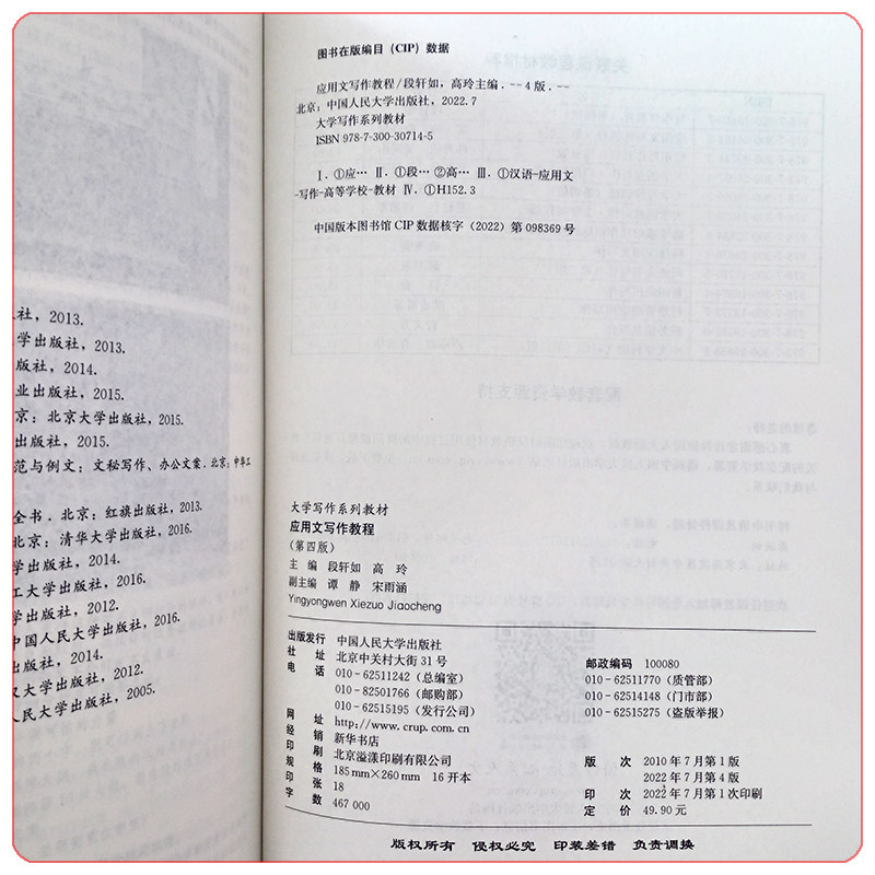 应用文写作教程 第四版 大学写作系列教材 段轩如 高玲 中国人民大学出版社 9787300307145