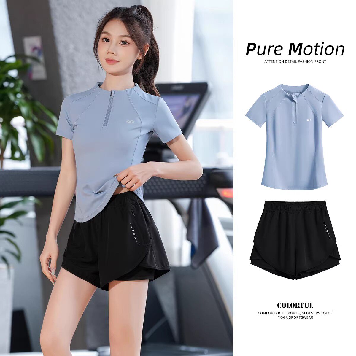 夏季休闲运动套装女短袖速干健身房训练服专业跑步马拉松透气上衣