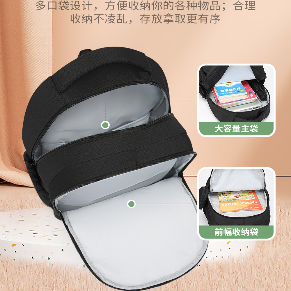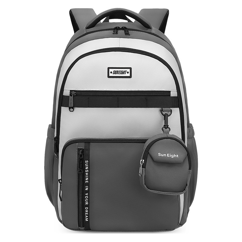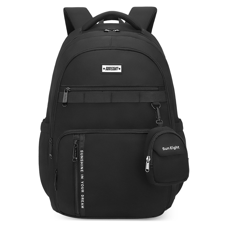阳光8点/suneight初中生书包女男生轻便旅游女生中学黑色双肩背包