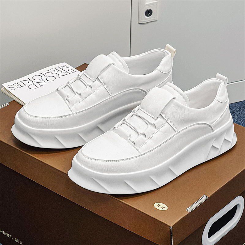 小白鞋男款2025新款高级感透气百搭一脚蹬休闲鞋厚底增高白色板鞋