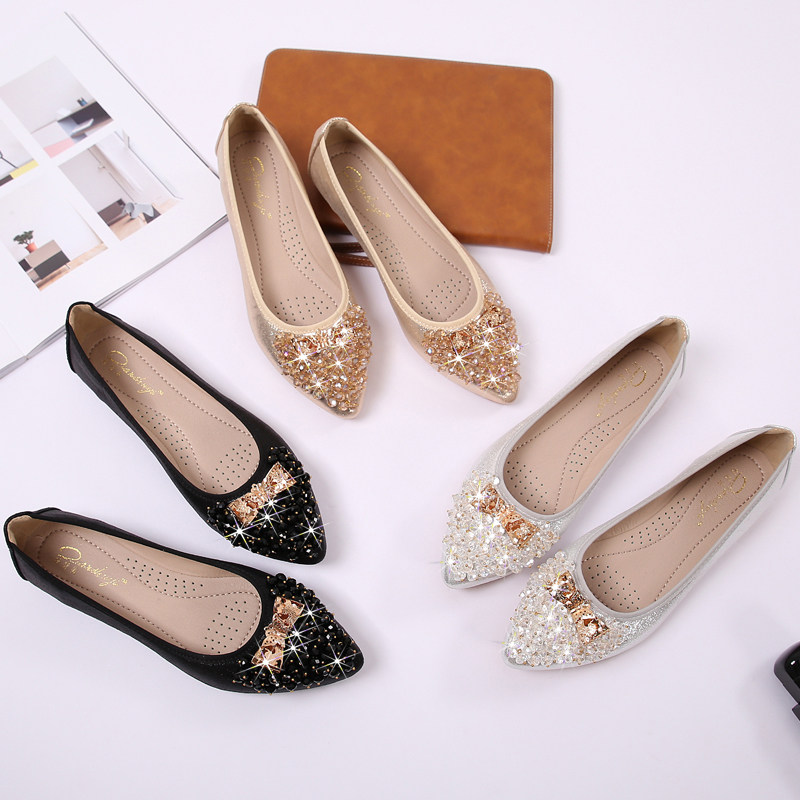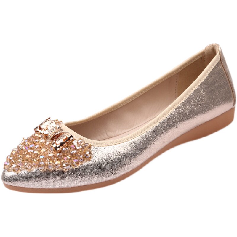 313233小码女鞋尖头浅口平底单鞋女春季新款豆豆鞋一脚蹬水钻鞋子