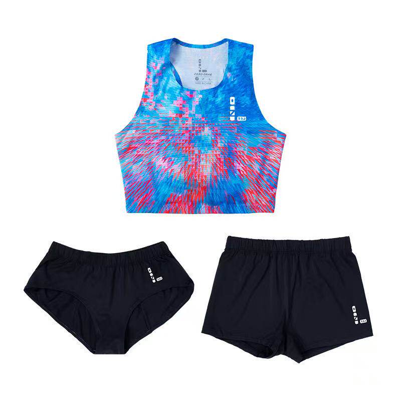 零阻力田径比赛服女专业体考马拉松跑步训练短款背心分体三件套装