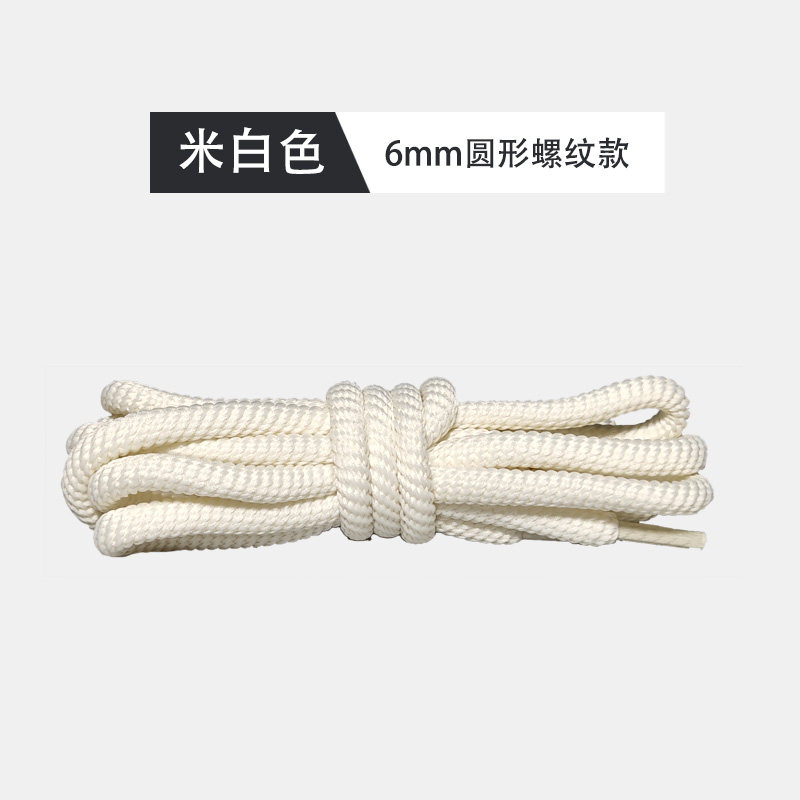 螺纹鞋带圆绳男款女款粗适配马丁靴面包鞋开口笑白色米色紫色加粗