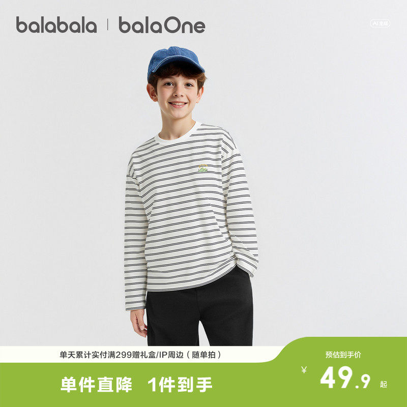 巴拉巴拉童装儿童长袖t恤男童女童上衣2026春季新款纯棉速干衣服