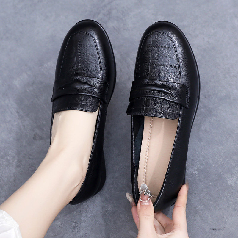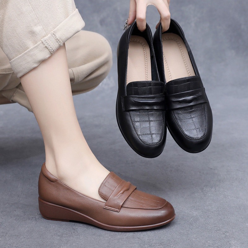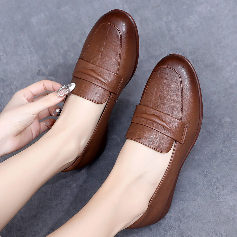 复古真皮乐福鞋女士单鞋坡跟软底妈妈鞋春款女鞋大码防滑休闲皮鞋