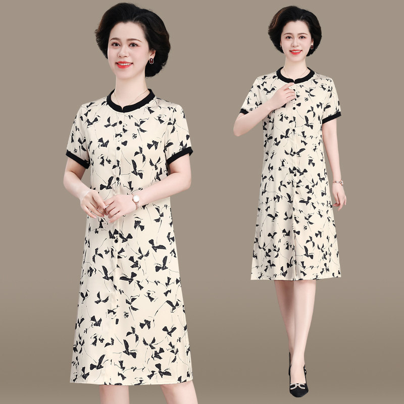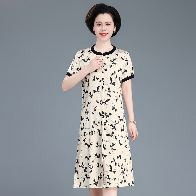 碎花连衣裙女夏季中长款时尚裙子2025新款中年妈妈高级感圆领长裙