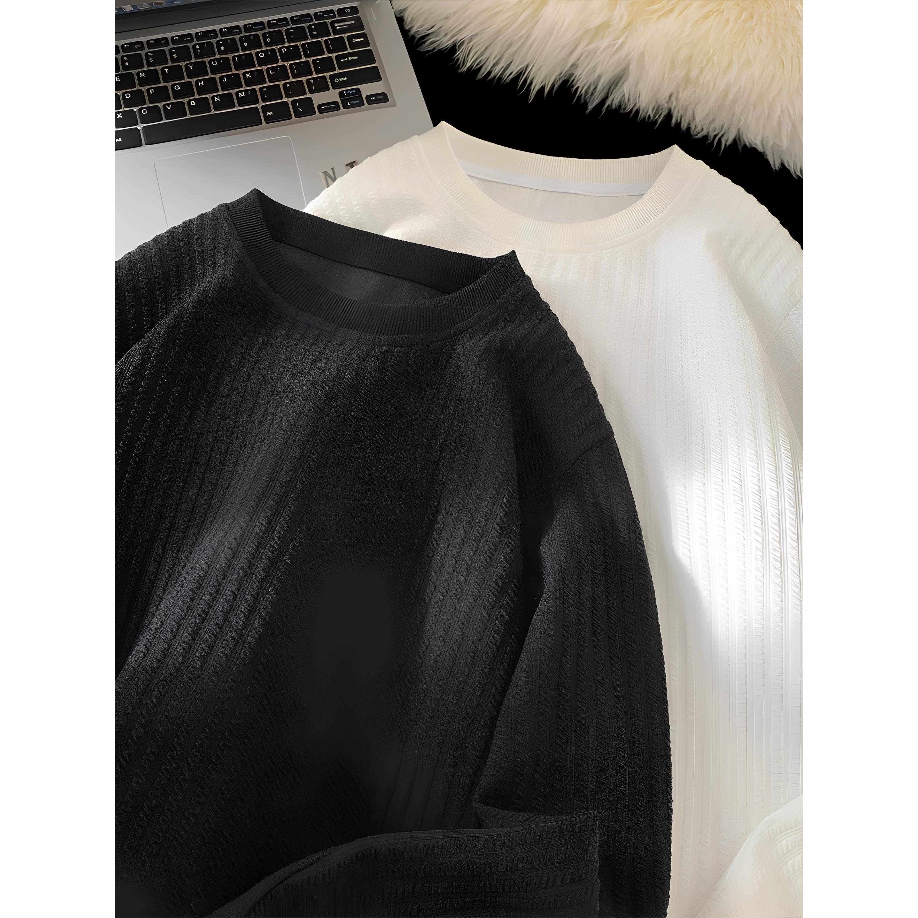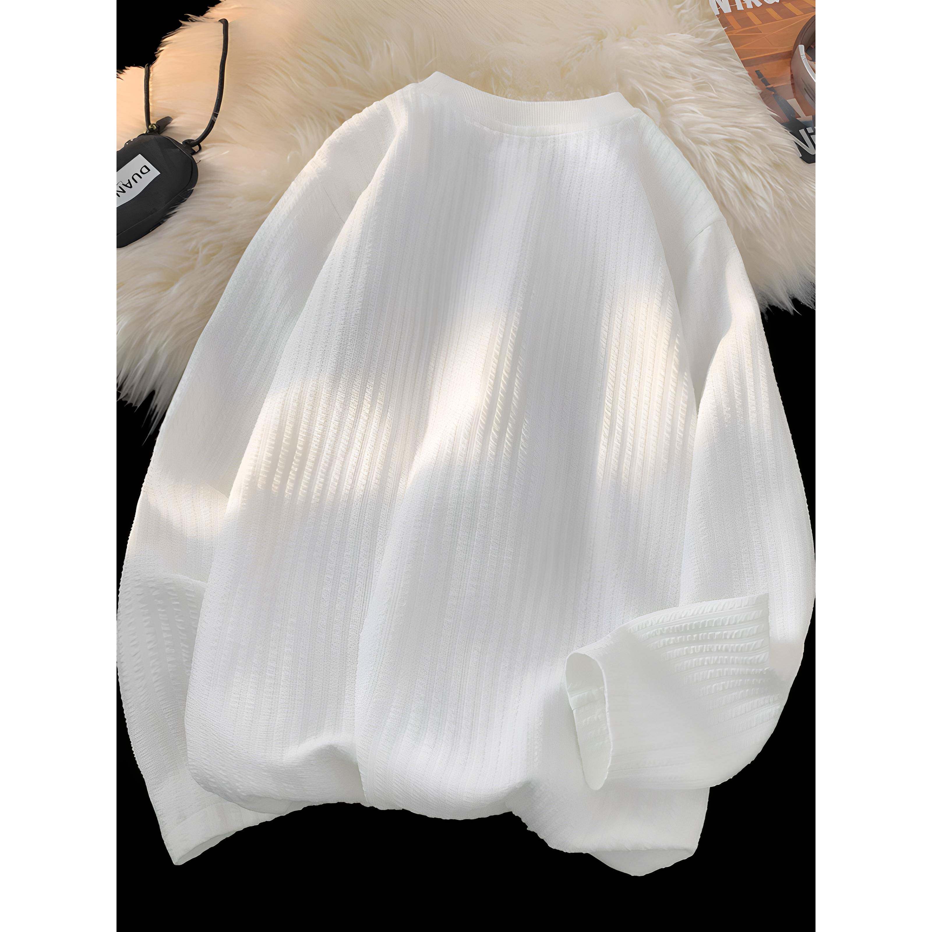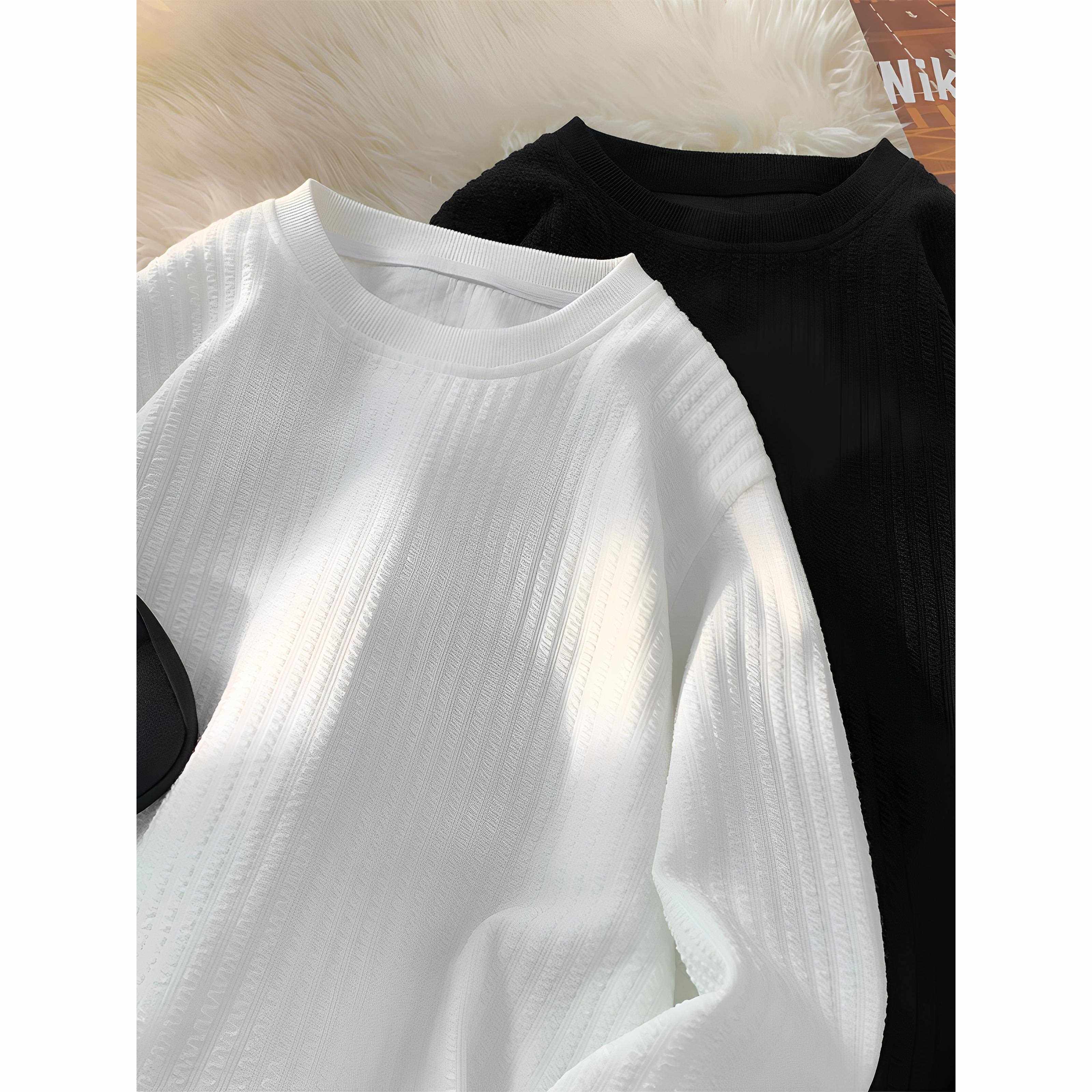肌理感长袖T恤男款春秋季潮牌薄款垂感高级宽松休闲内搭打底上衣